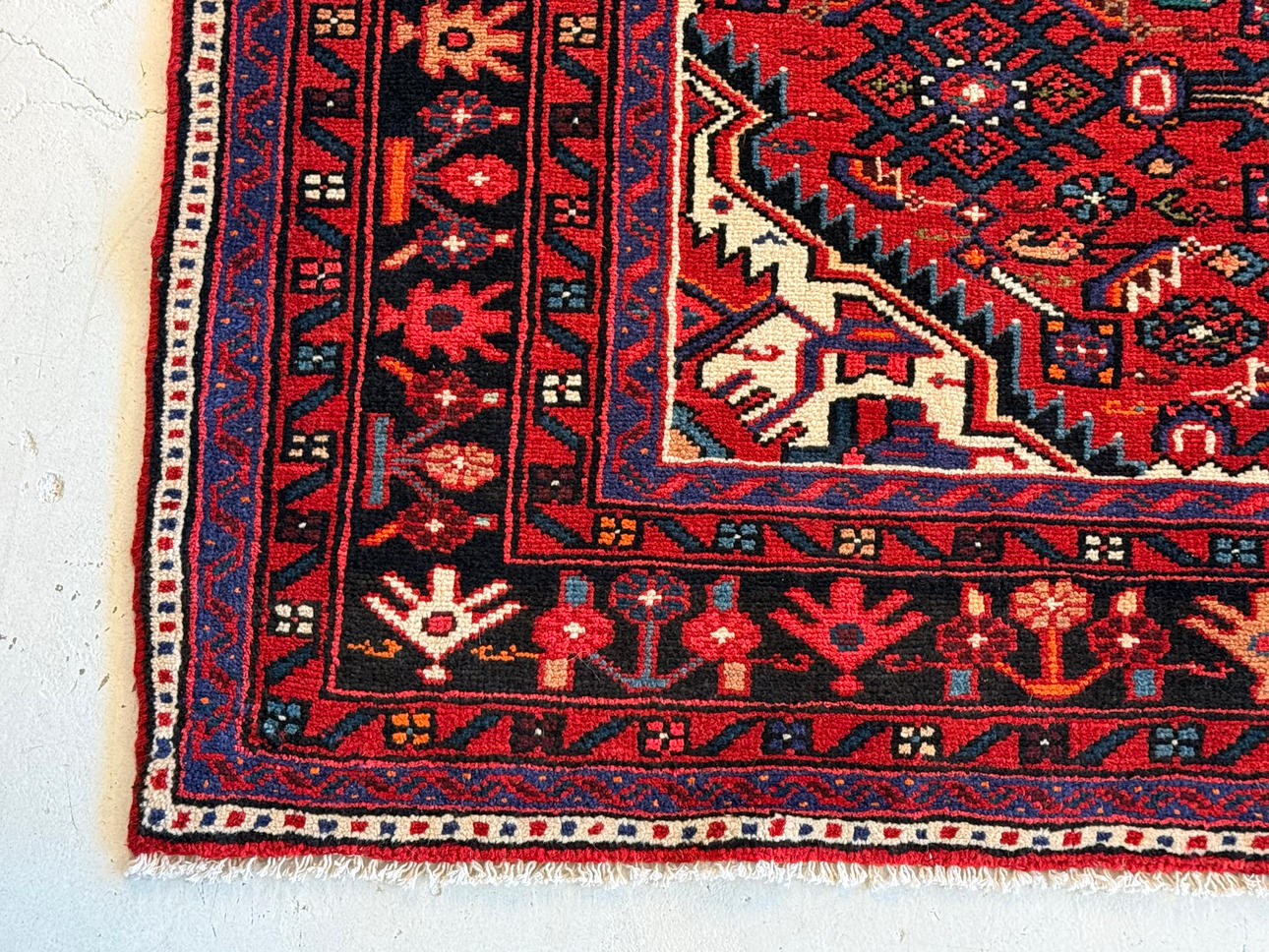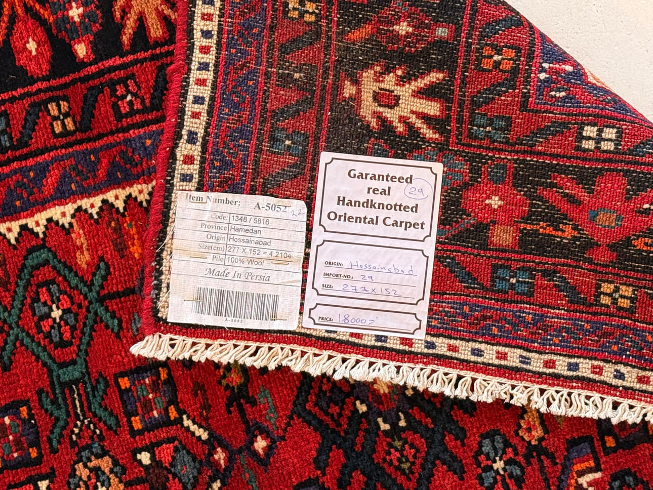 Handknuten ullmatta, 277x152 cm.