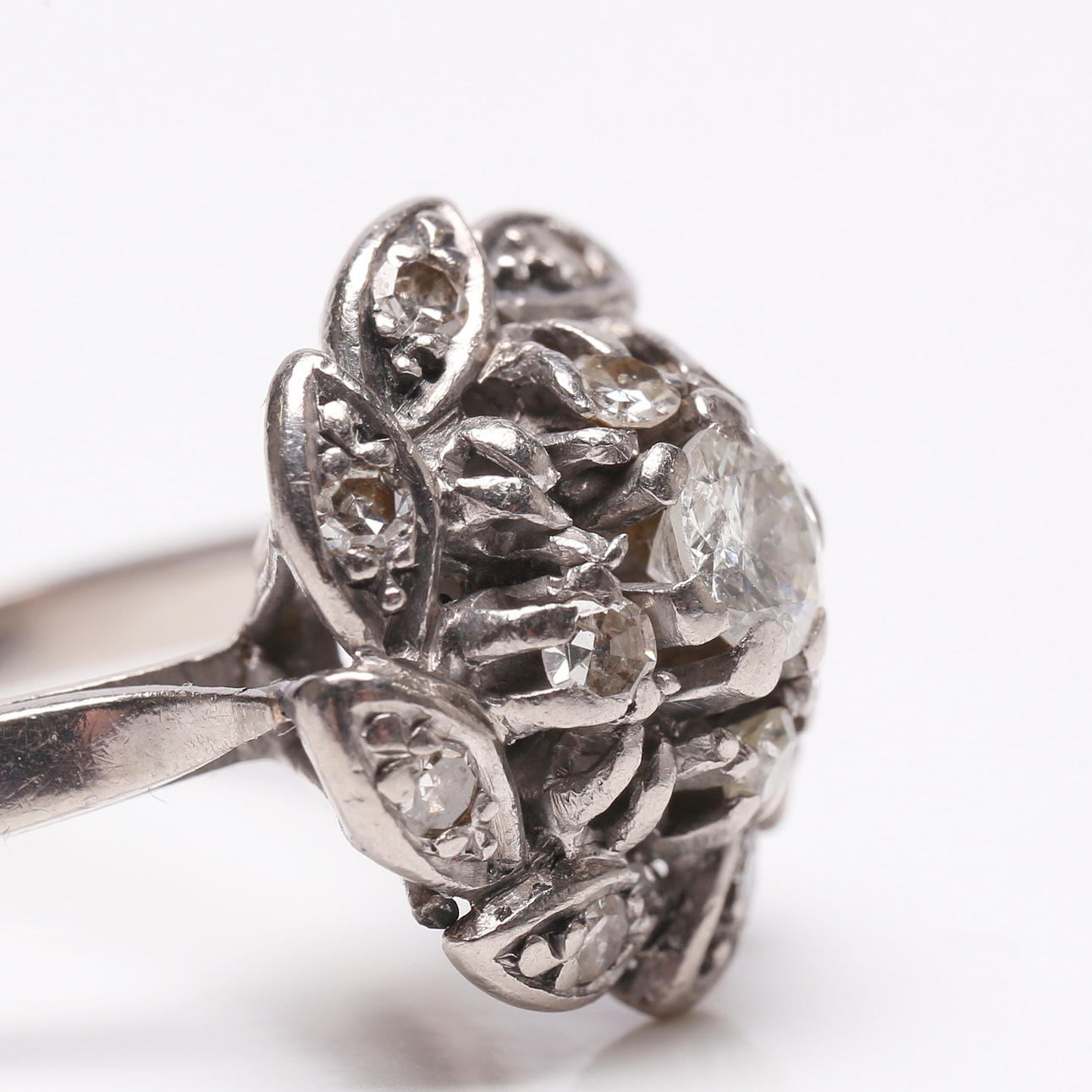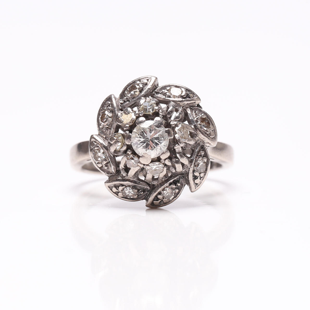 RING, 8K vitguld samt diamanter, carmosemodell, vikt ca 4gram.