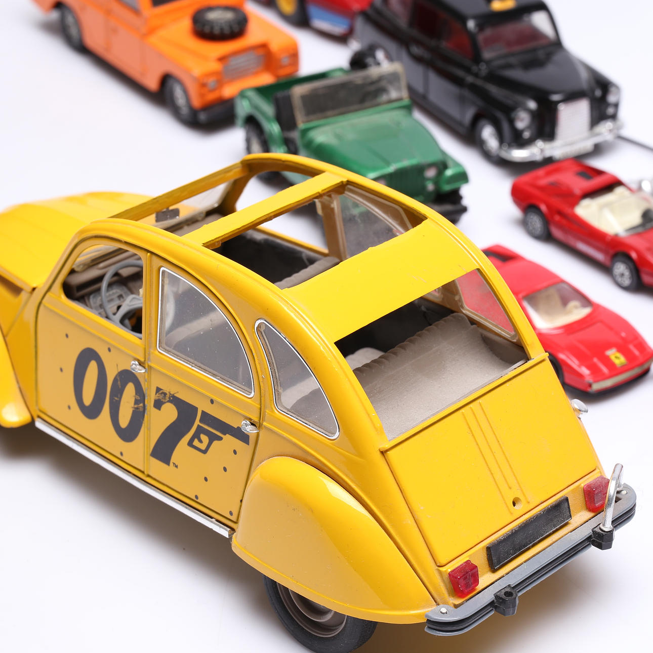 Bl.a. modeller av Ferrari. Längsta bilen ca 22 cm.
