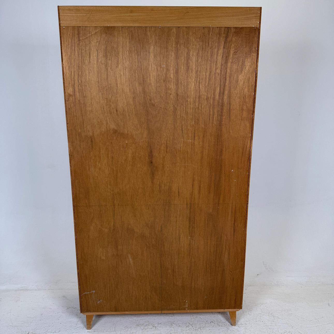 Slitage, fläckar, slagmärken, enstaka smärre fanerskador, dörr med mindre spricka.