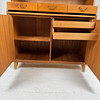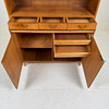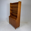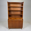 Teak, med utdragbar skrivskiva. Längd ca. 100, bredd 42, höjd 185 cm.