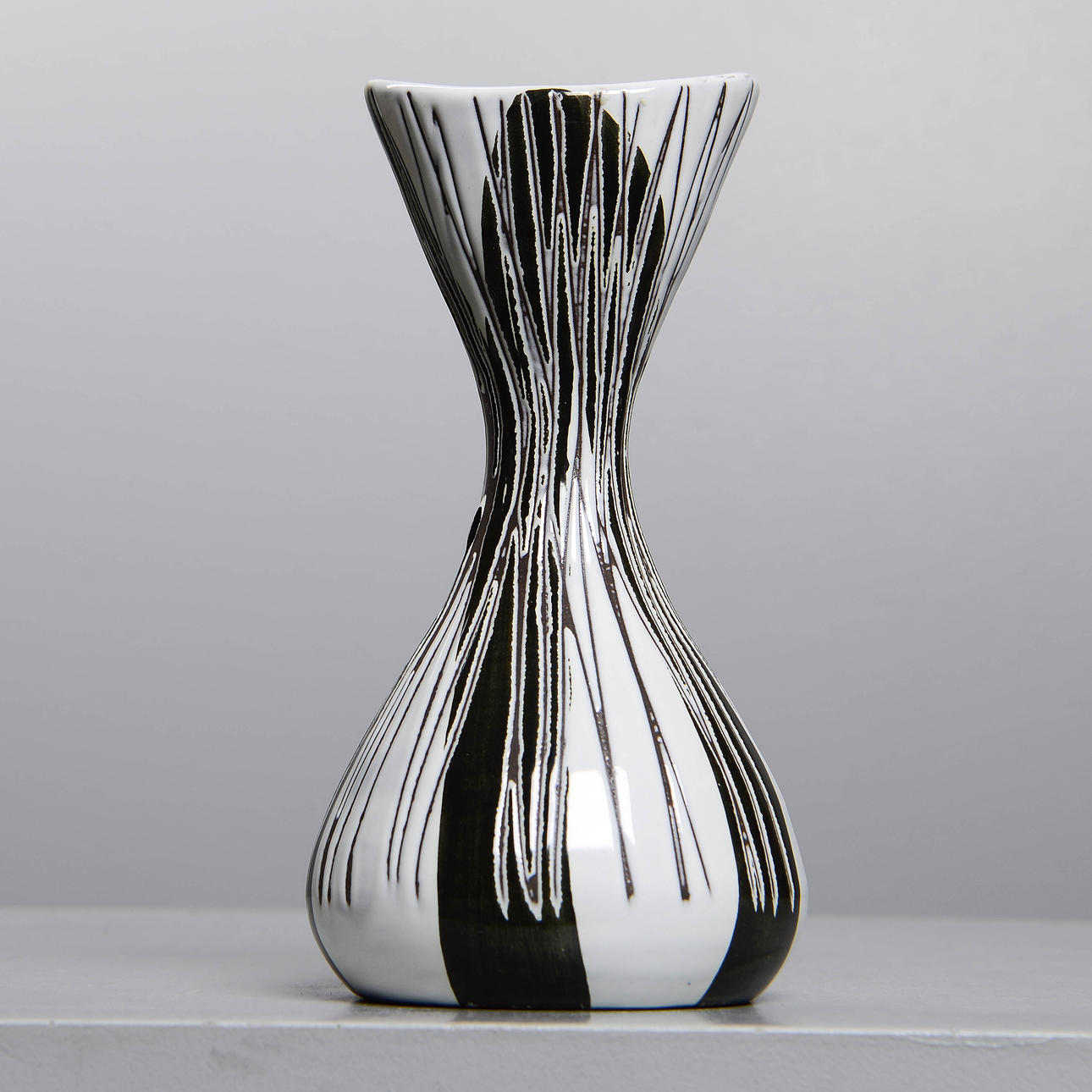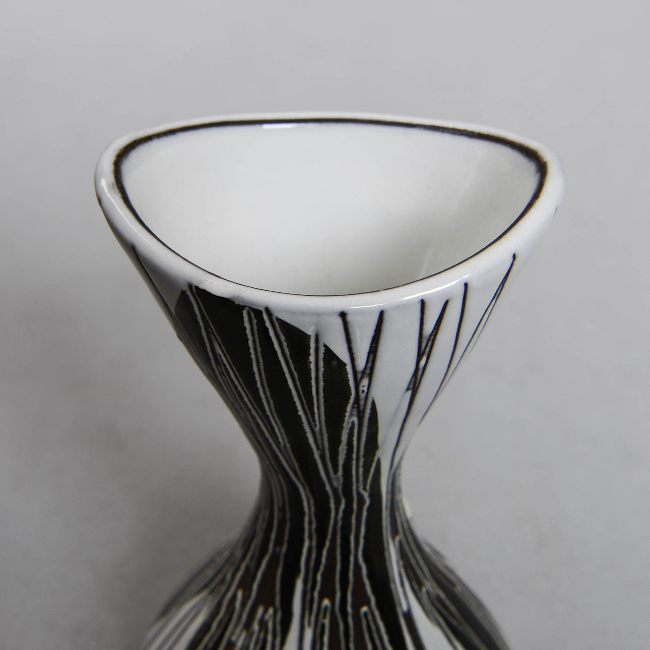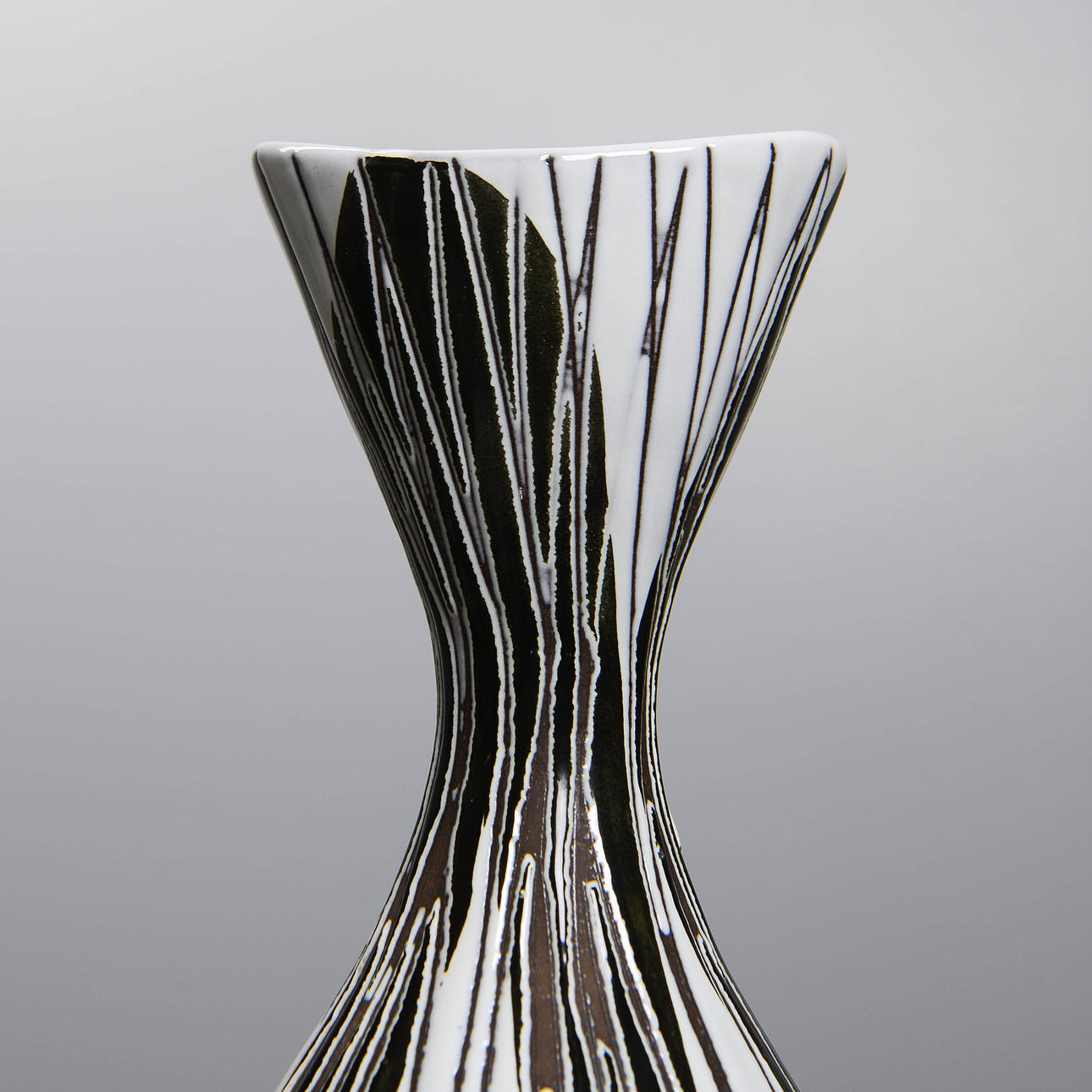 Frågan är vad som imponerar mest: hennes måleri på det grova chamottegodset, känsligt och kraftfullt på samma gång, eller det modernistiska konstgodset under 50- och 60-talen med en stram, ofta ristad, och starkt stiliserad eller geometrisk dekor. Oavsett framstår hon som en av de ledande formgivarna inom den svenska 1900-talskeramiken.