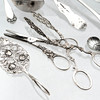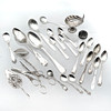 Innehåller bland annat skedar, skål, lockdosa, servettring, sockertång etc.