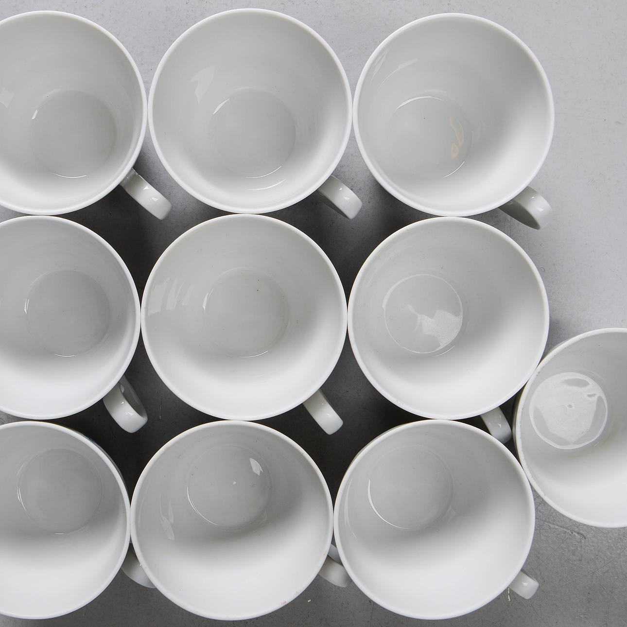 10 kaffekoppar med 11 underfat, kopparnas diameter: 8 cm.