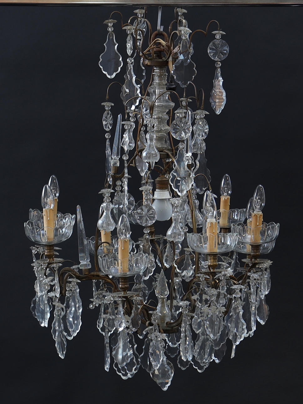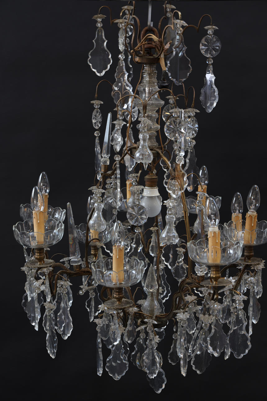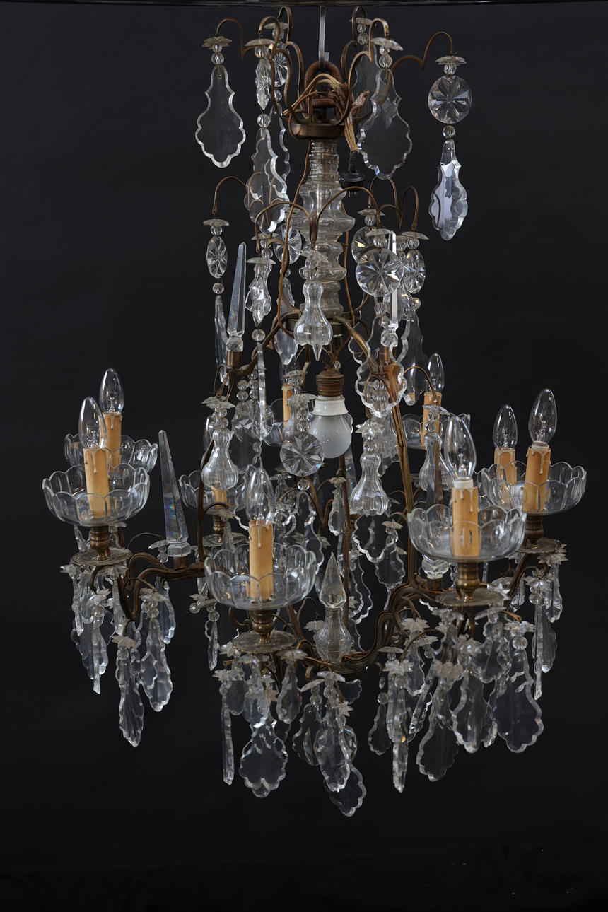 Naggar. Böjda ljusarmar. Några prismor saknas.