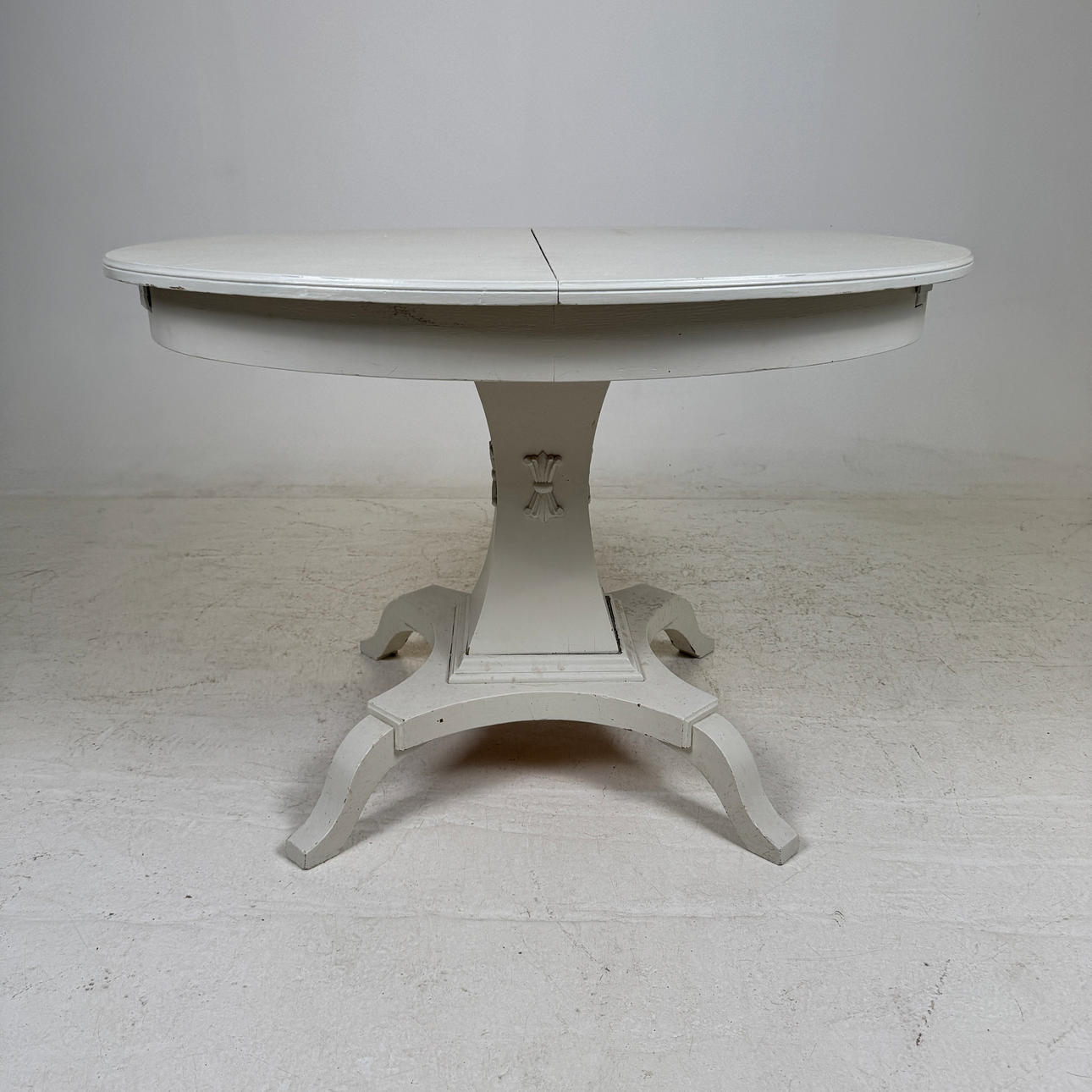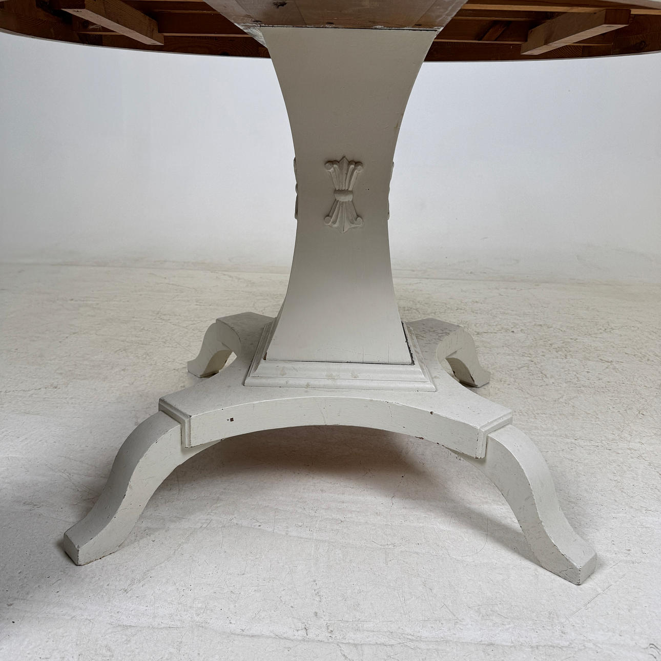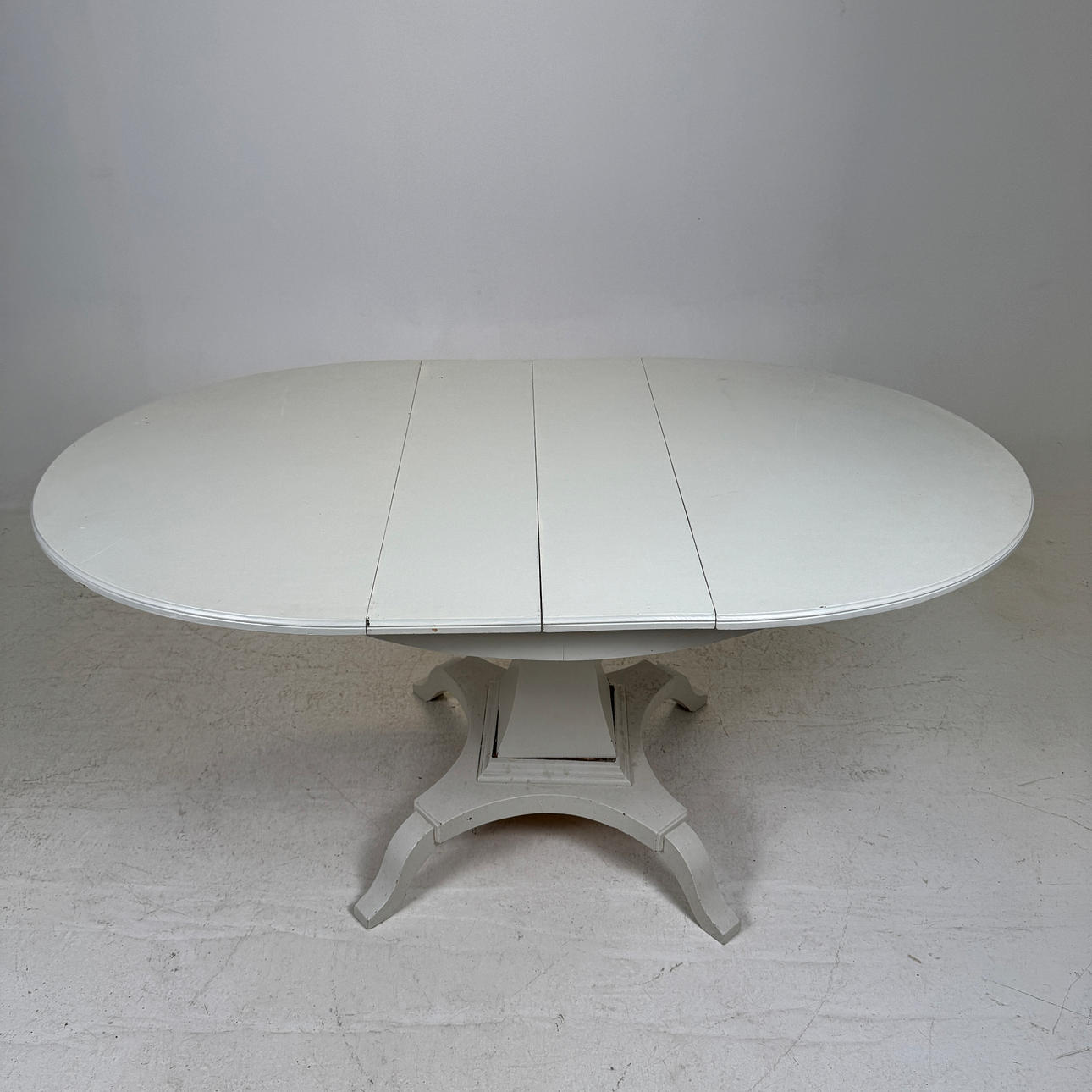Bemålat, längd ca. 110, bredd 88, höjd 73 cm. 2 mellanskivor á 21 cm.