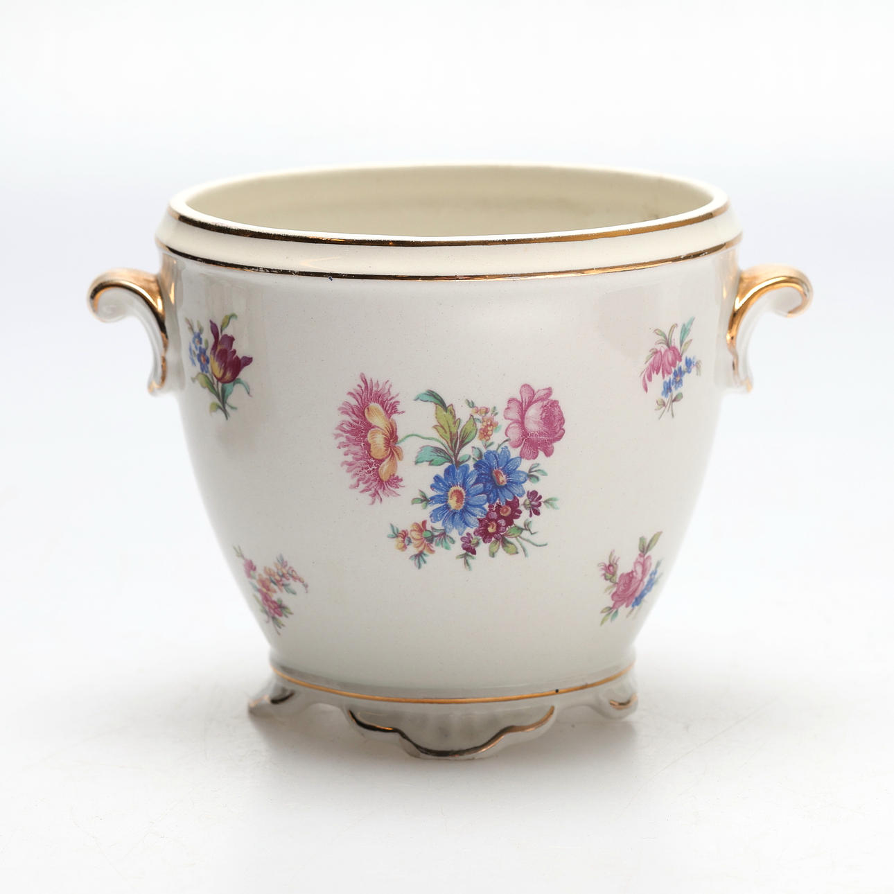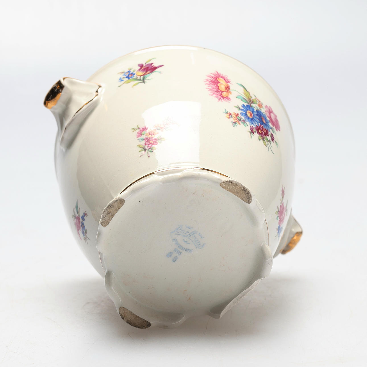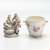Figurin i rokokostil, höjd ca 15 cm. Vas, Rörstrand, höjd ca 12 cm, diameter ca 16 cm inklusive handtag.
