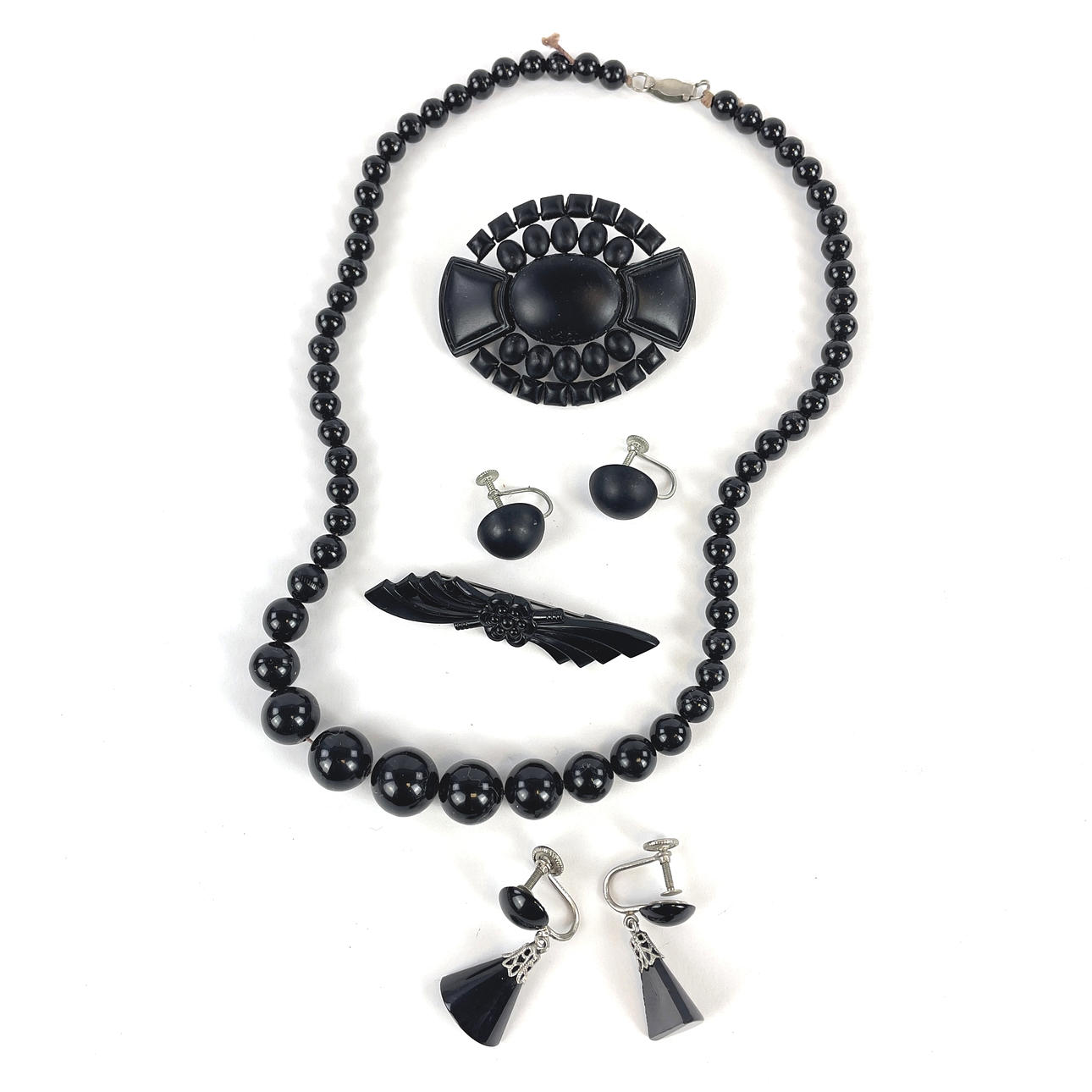 1 st collier, svart plastpärlor, längd ca 42 cm.