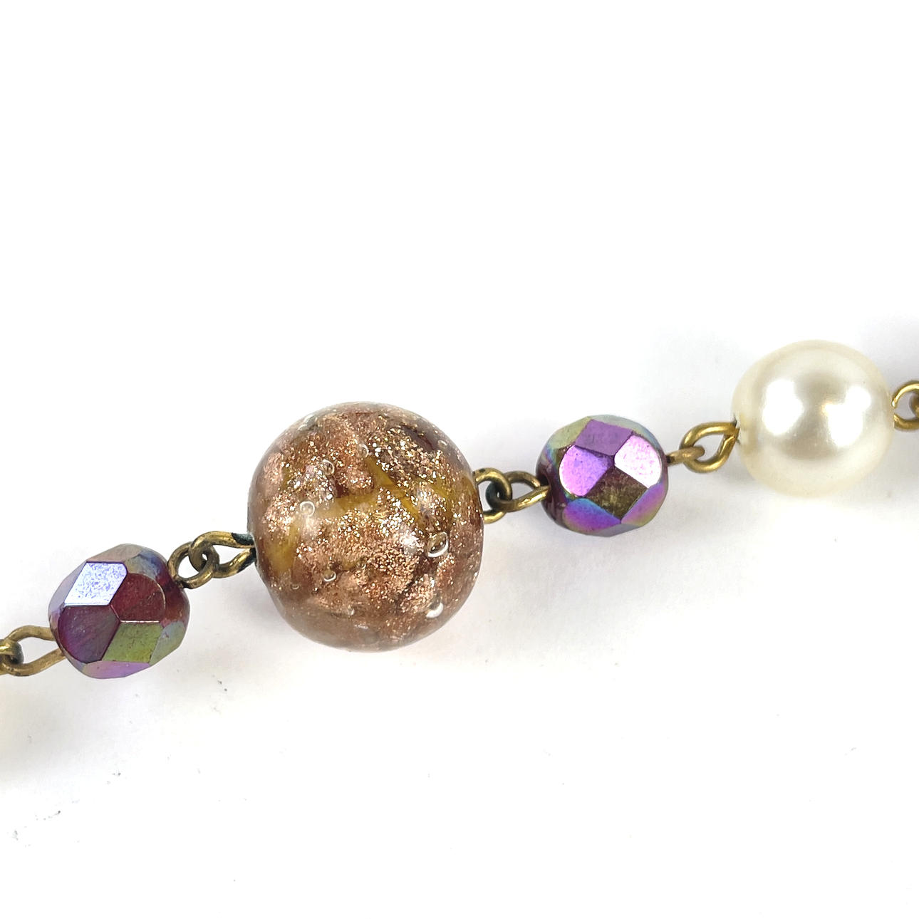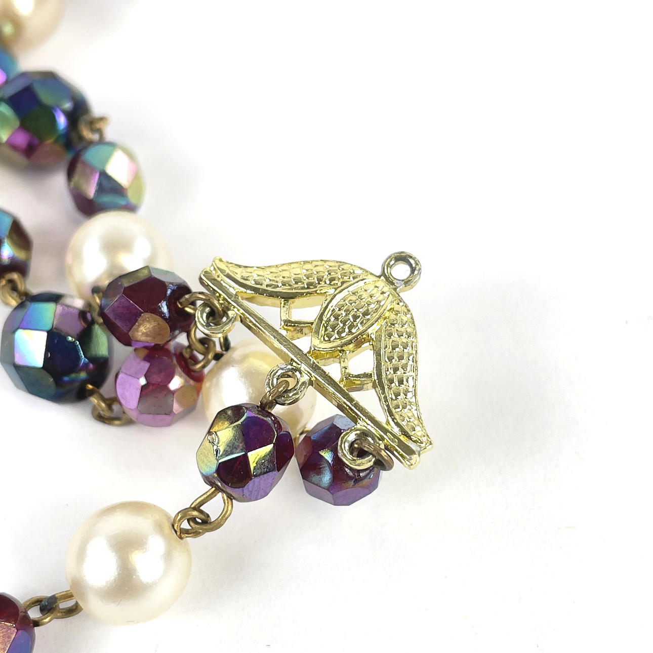 1 st 3-radigt collier märkt Germany, vita samt Aurora Borealis plastpärlor, längd ca 38 cm.