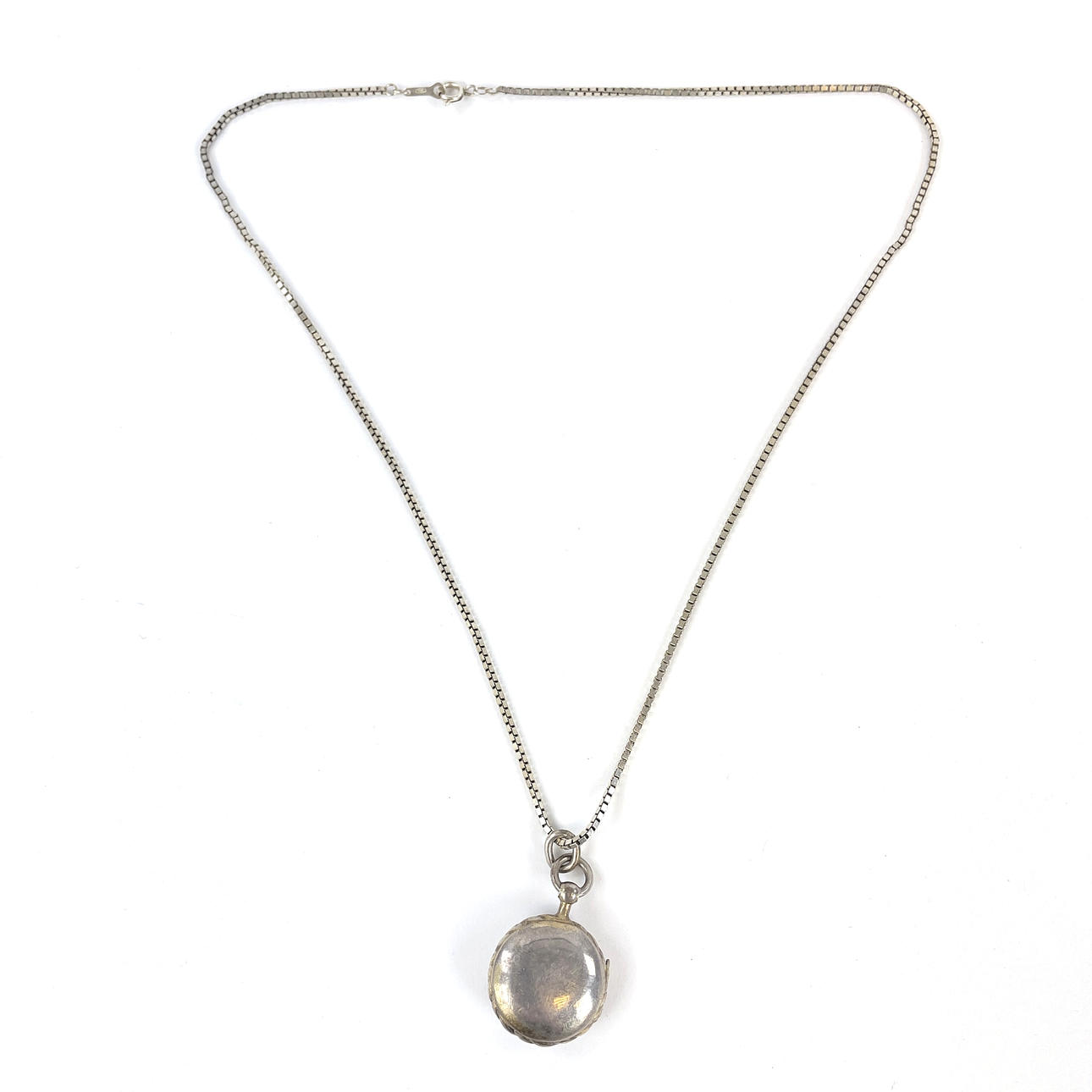 1 st silverkedja, längd ca 50 cm, stämplad 925, medaljong stämplad AWA, kattfot, S4, Ø ca 18 mm, totalvikt ca 12,6 g.