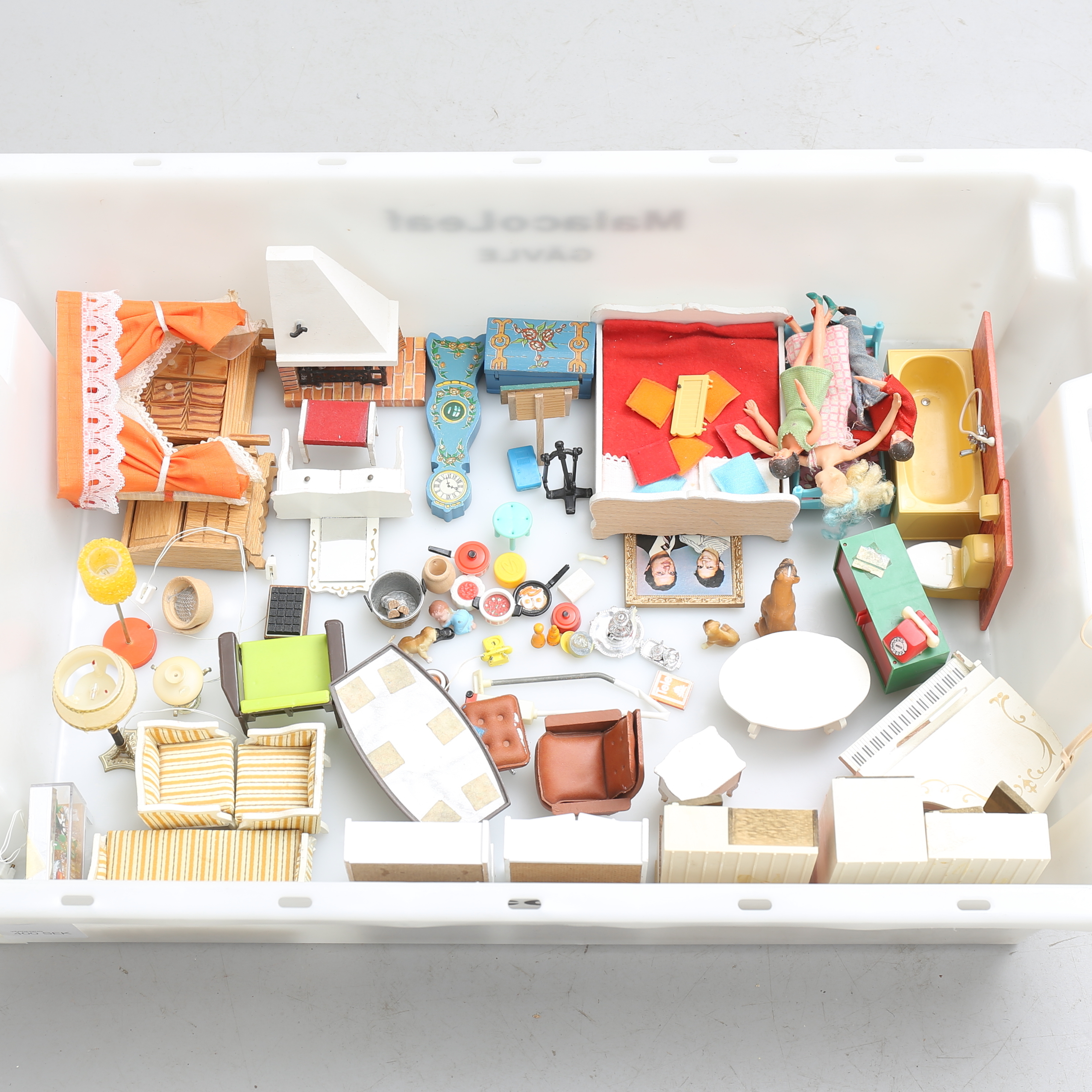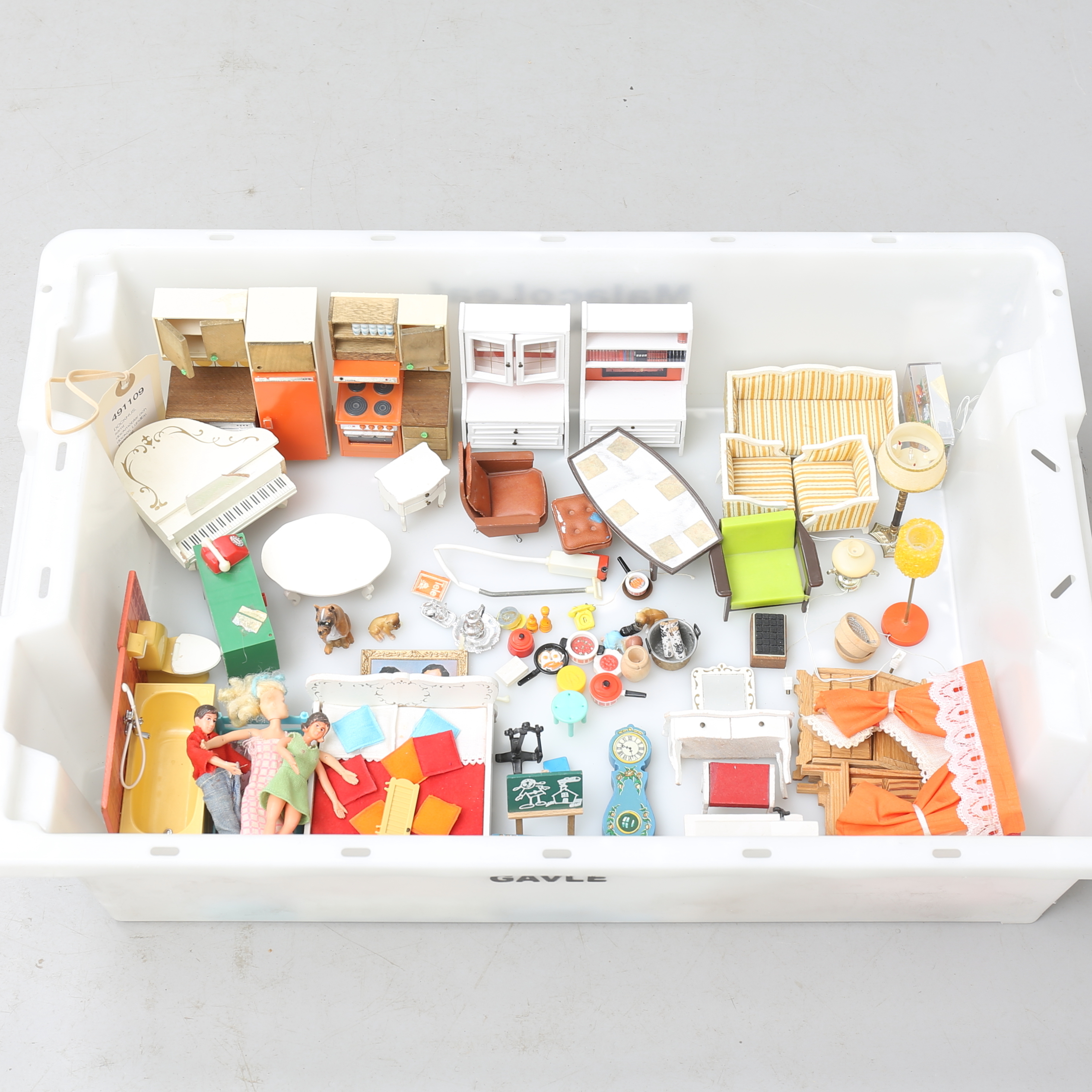 491109. DOCKHUS, samt dockmöbler och dockor, Lundby, 1900-tal.