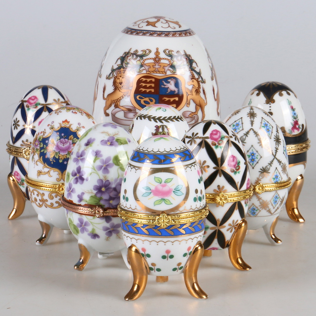 491121. LOCKASKAR, 9 st. Porslin, äggformade, 1900-tal.