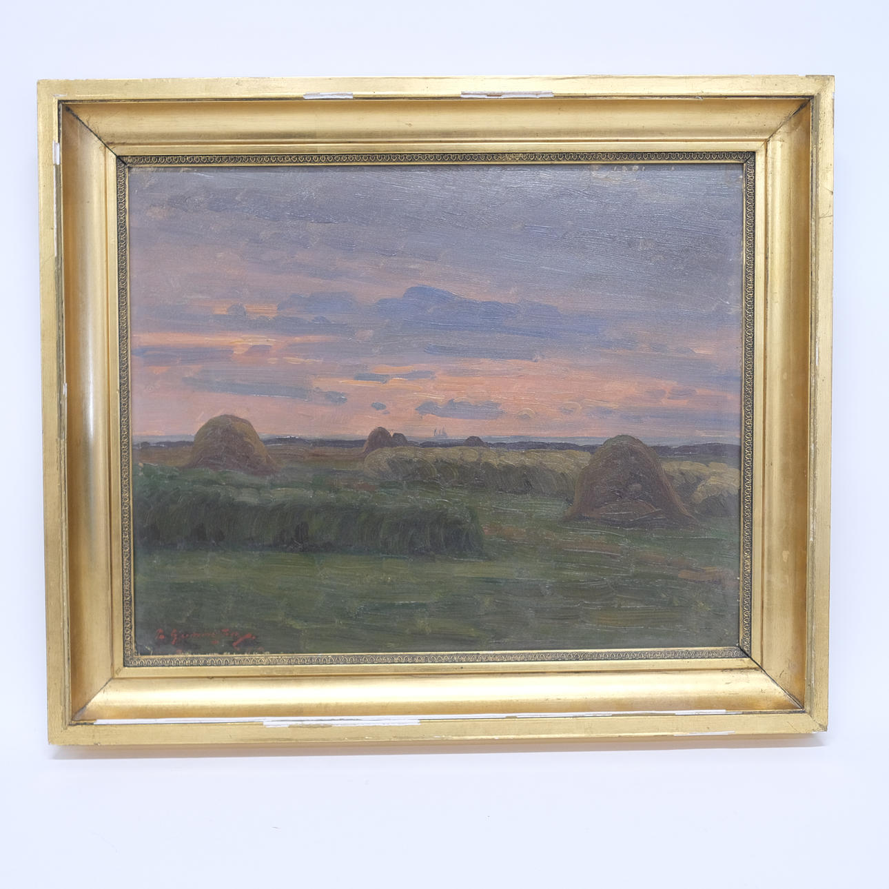 Afton på vången 1927, mått 31 x 40 cm, rammått 42 x 51 cm, signerad.