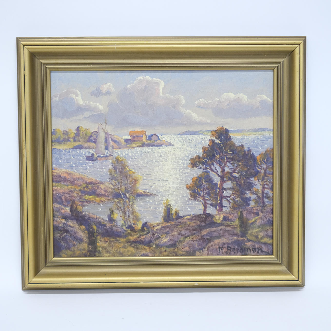 Skärgårdslandskap, mått 38 x 45 cm, rammått 52 x 59 cm, signerad.