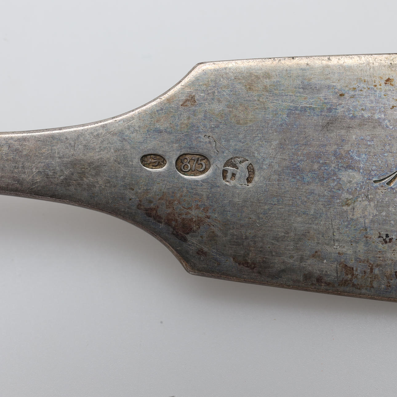 Bruksslitage, missfärgningar, gravyr, monogramgravyr.