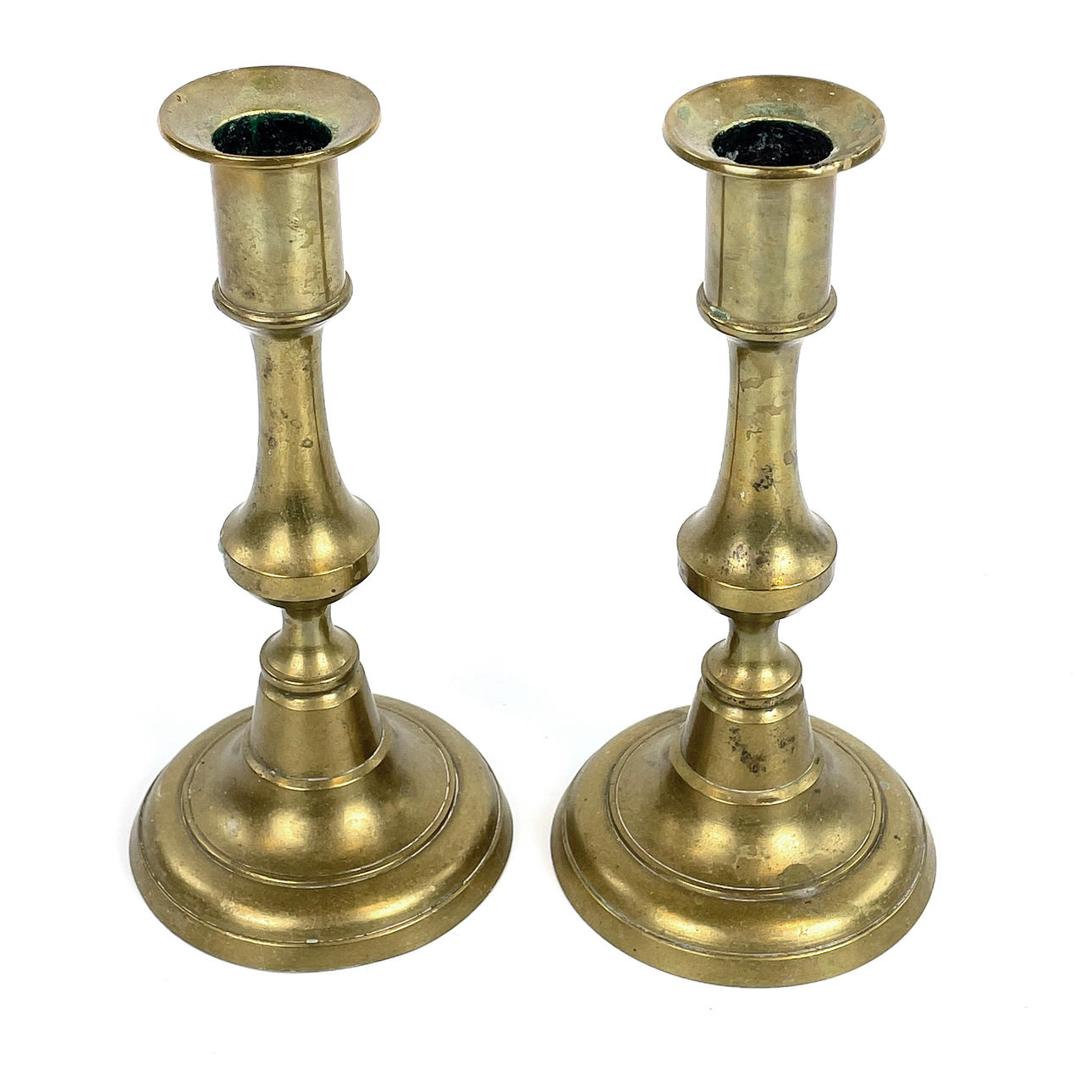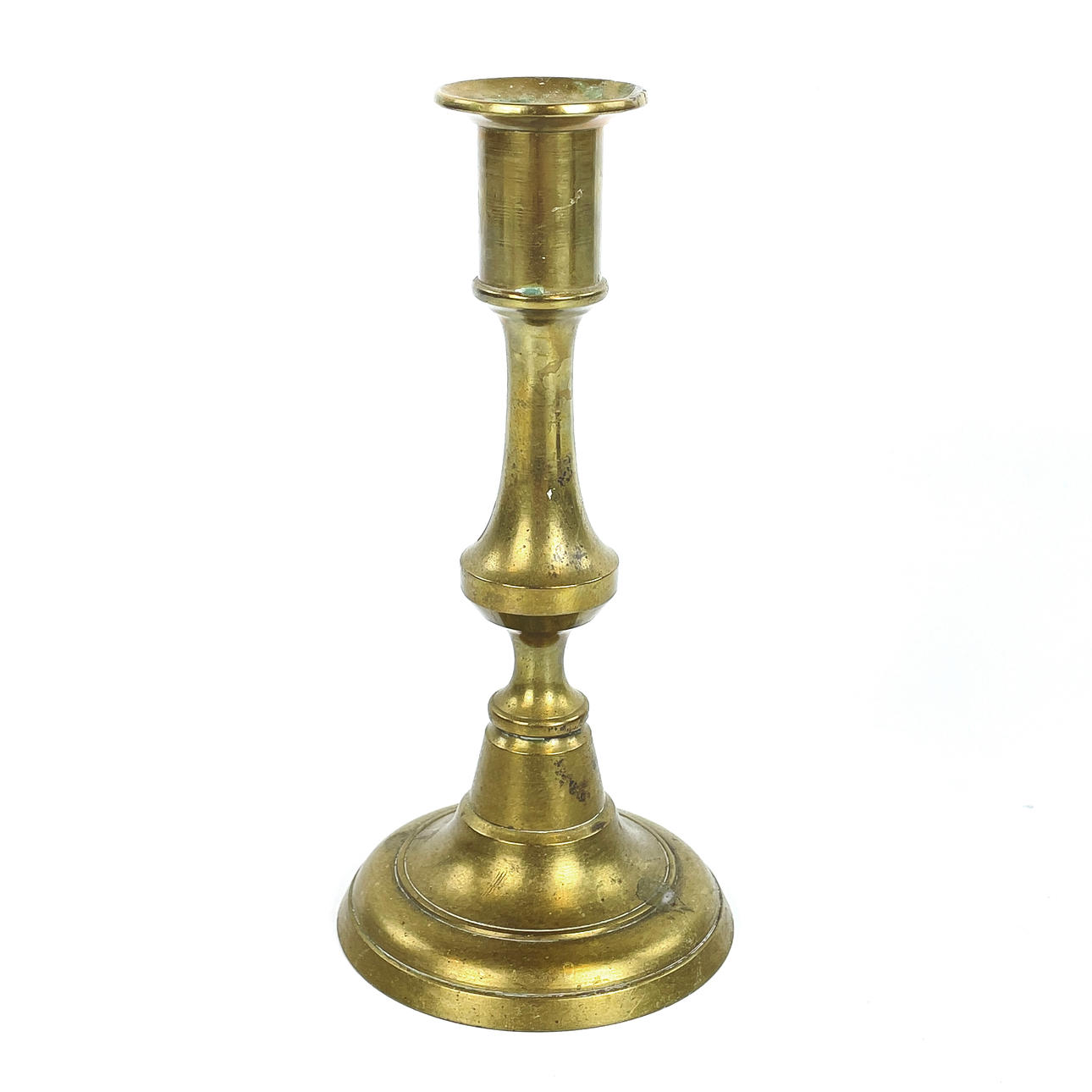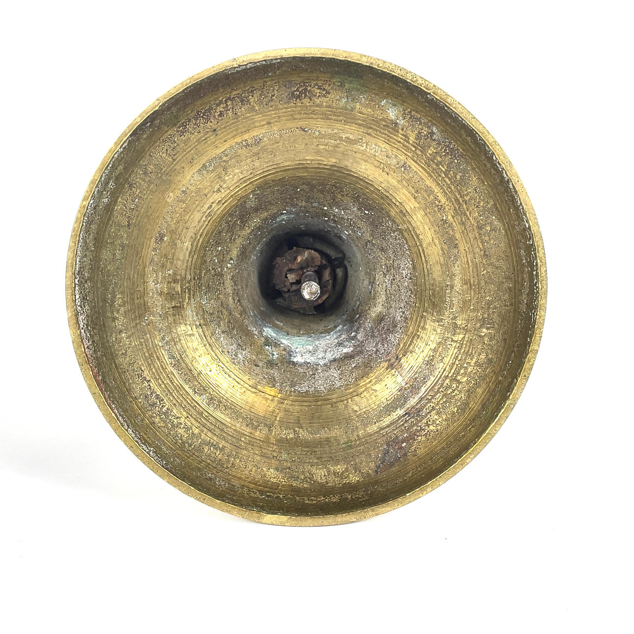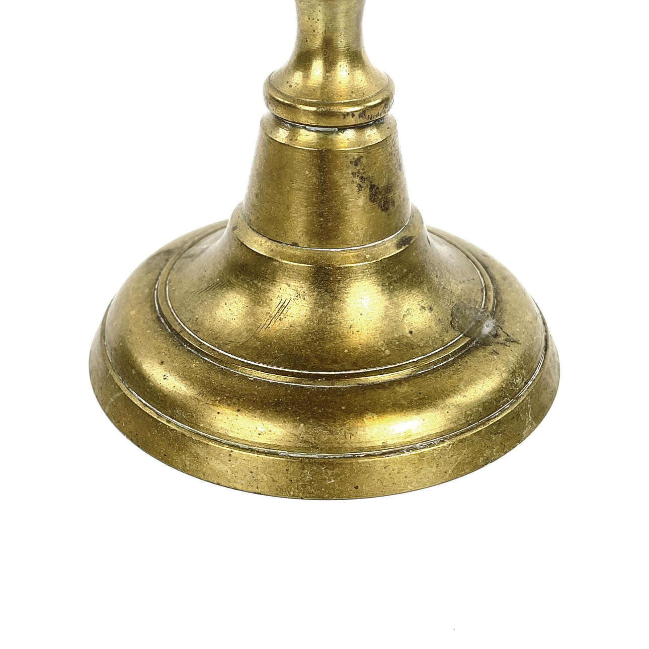 Bruksslitage, ena ljusstaken med bucklig ljushållarkant, rostiga skadade skruvar.