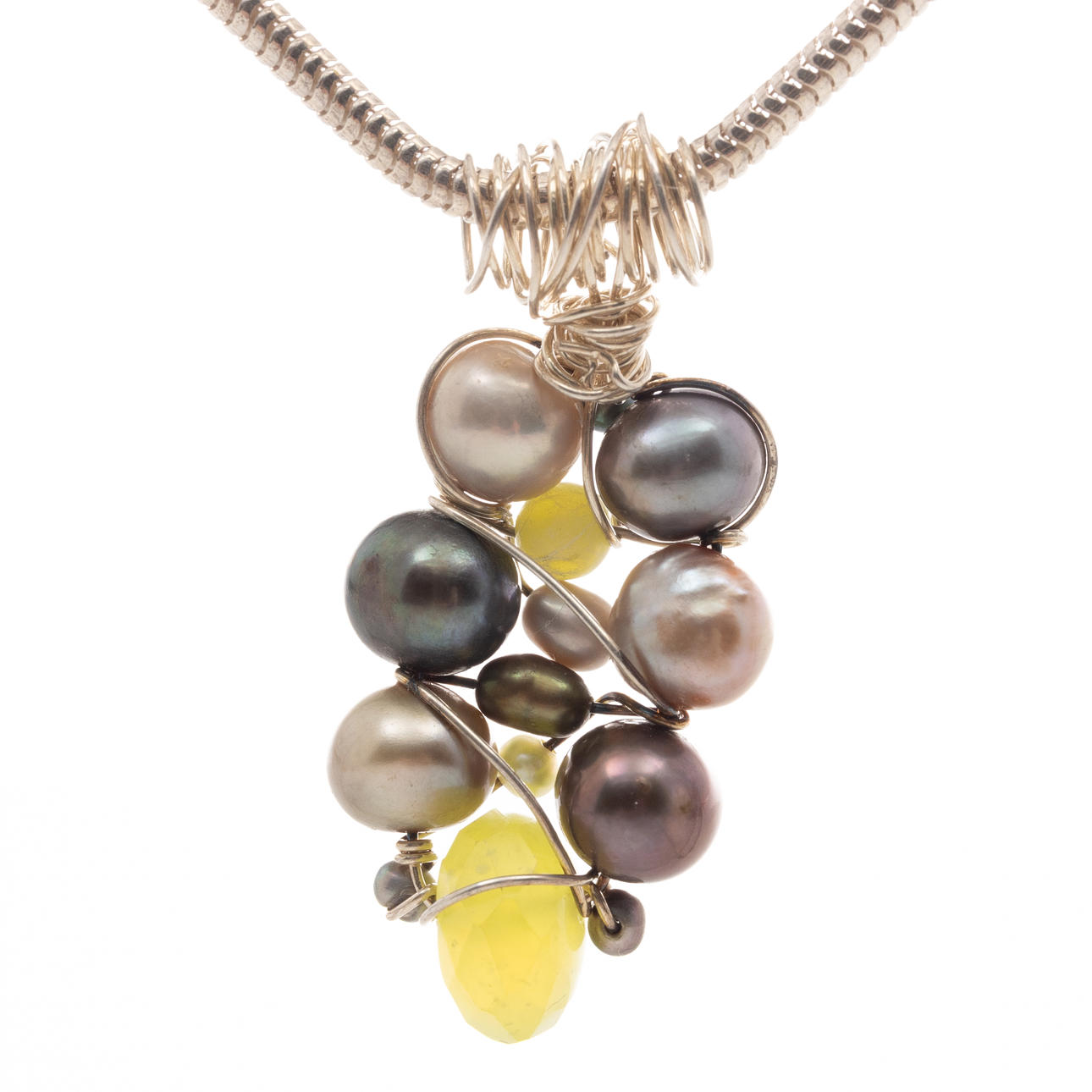Collier i sterlingsilver med odlade pärlor och en slipad peridot
