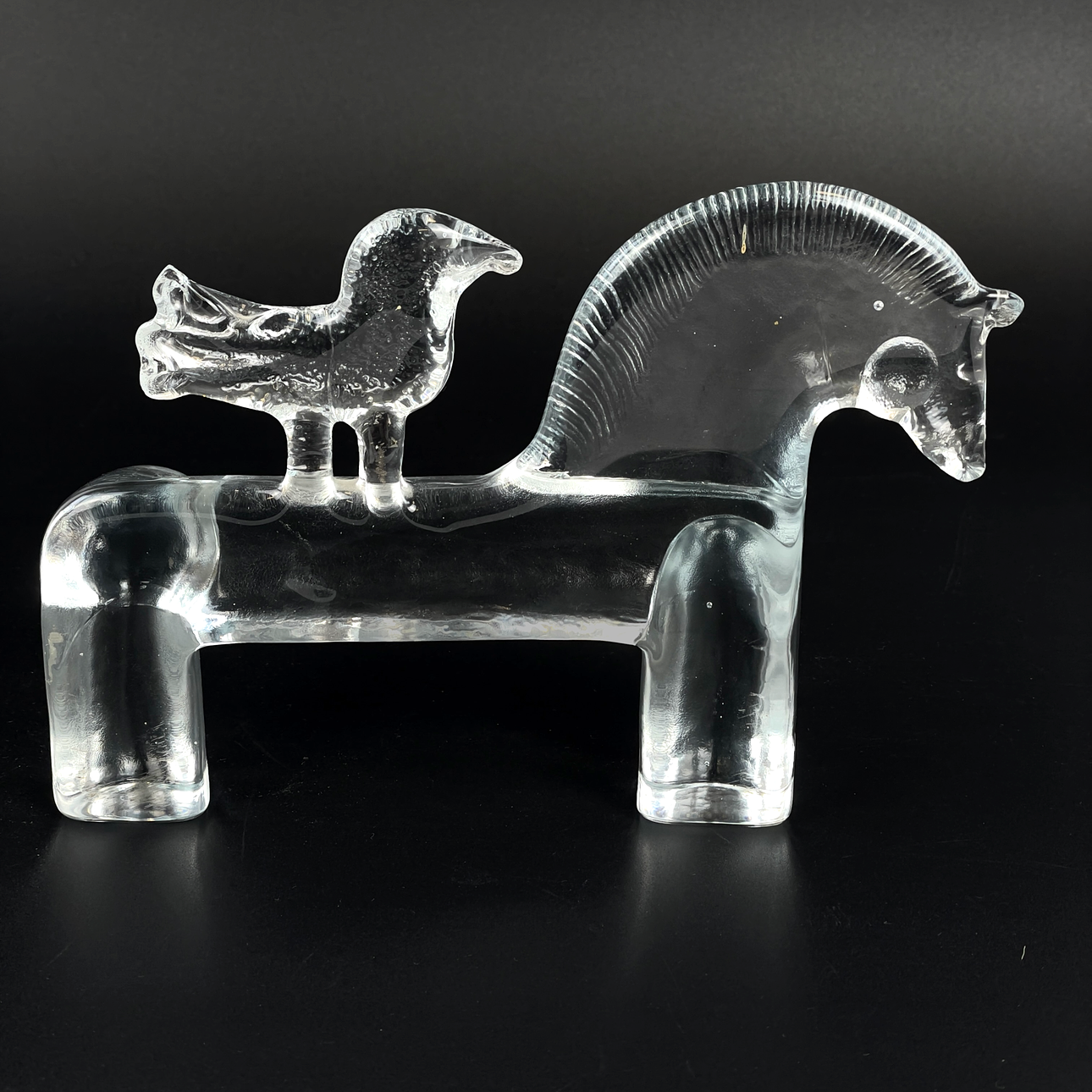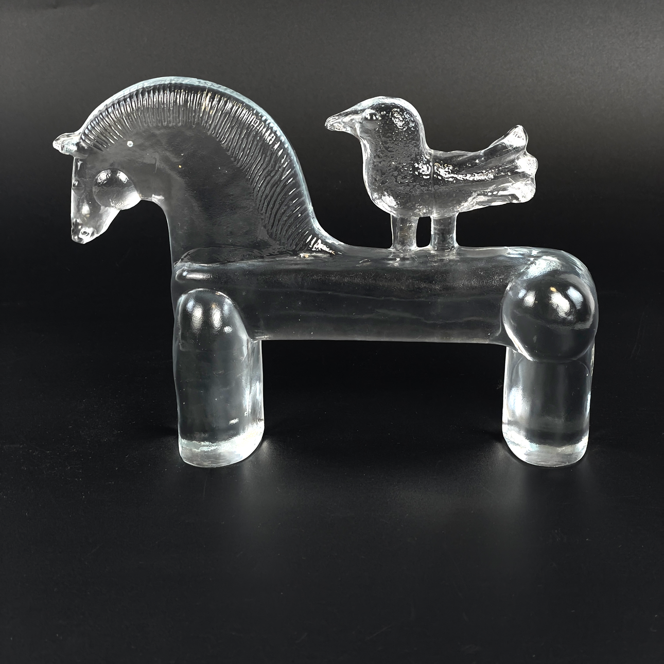 1 st häst med fågel, Bertil Vallien, Boda, osignerad. Höjd 14,5 cm, längd ca 21 cm