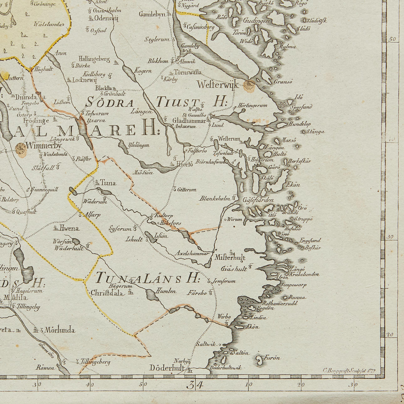 MARELIUS, NILS. Charta öfwer Östergöthland, eller Linköpings höfdingedöme, samt de härader ut Jönköpings och Calmare höfdingedömen, som höra til Linköpings biskops stift. (Lantmäterikontoret), 1779.