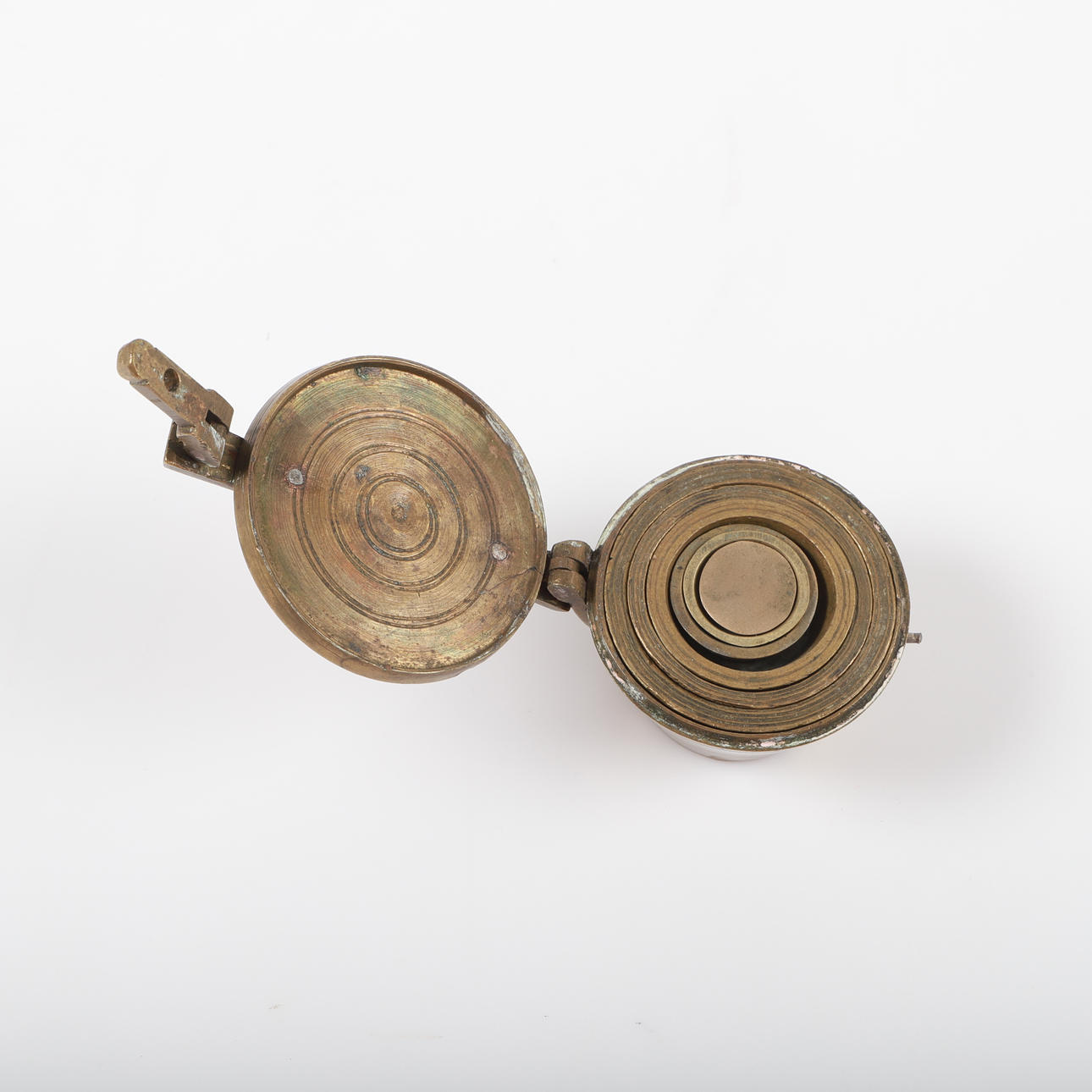 4913991. VIKTSATS, 7 delar, mässing, 1850.
