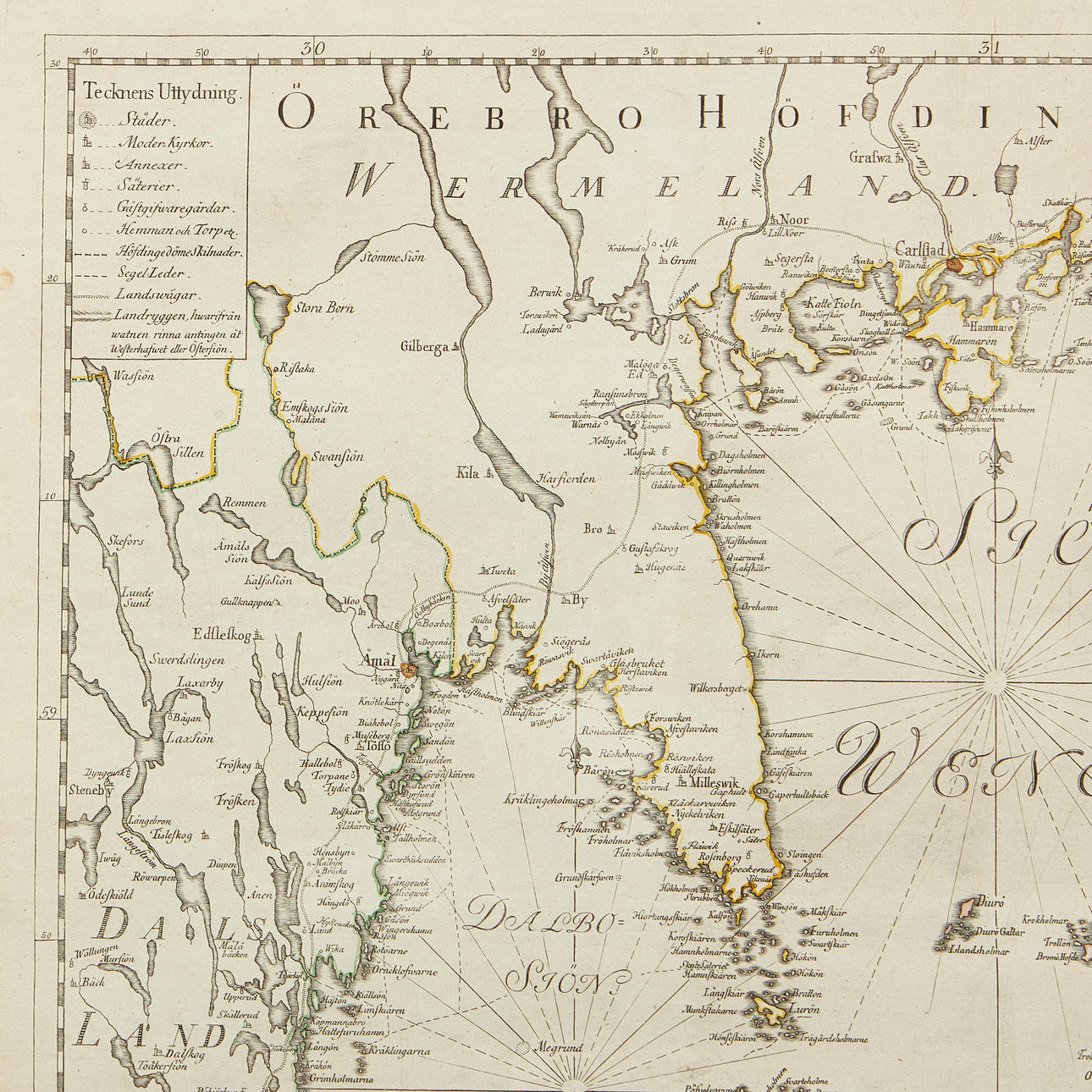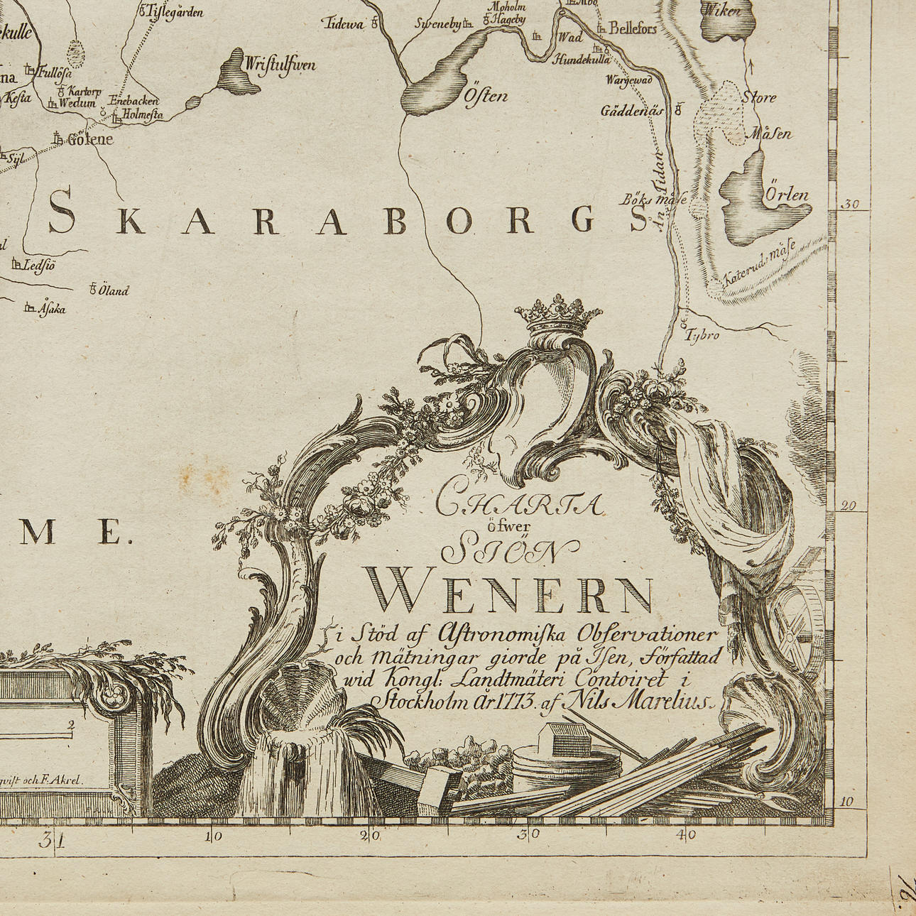 MARELIUS, NILS. Charta öfwer sjön Wenern i stöd af astronomiska observationer och mätningar giorde på isen (..) Kong. Landtmäteri Contoiret, 1773.