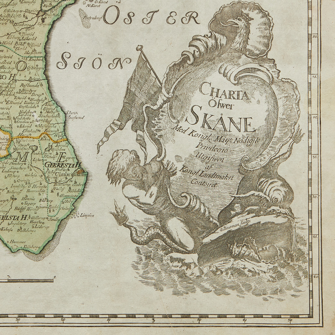 4914998. KARTA ÖVER SKÅNE, CA 1750.