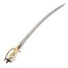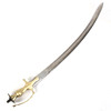 Indisk sabel. Krökt klinga av stål med blodränna, svagt etsad dekor. Fäste av mässing med skivformad knapp och bygel.