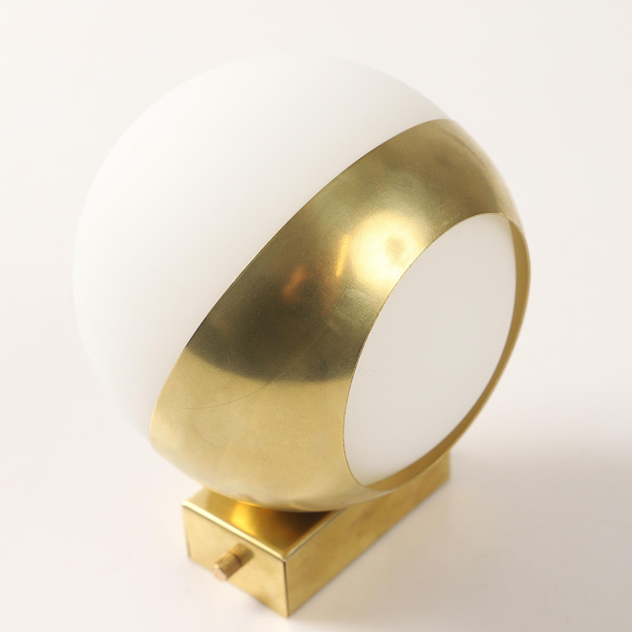 Stömme av mässing, 1 ljuskälla E14, glasboll av frostat vitt glas