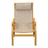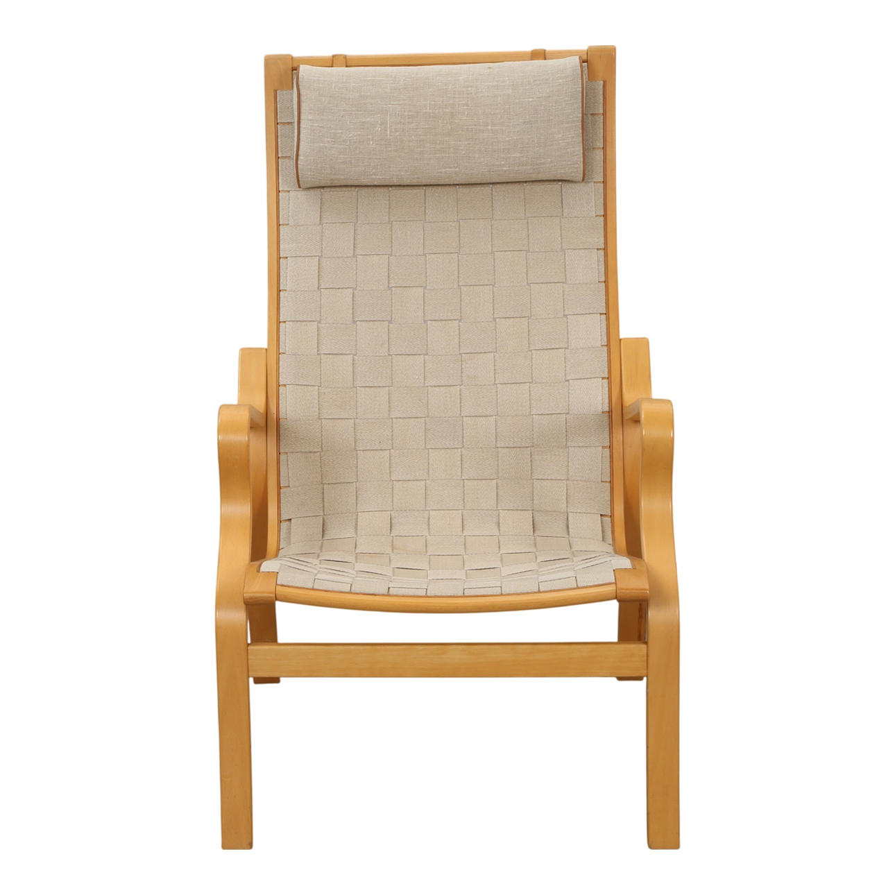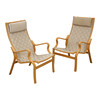 FÅTÖLJER, ett par ”Albert” med ramar av formspänt, lackerat bokträ, försedda med flätade naturliga kransar, halshylsor klädda i duk med läderborrningar. Tillverkad på Kvist Møbler. H. 96, F. 62 cm. Sh. 40 cm.