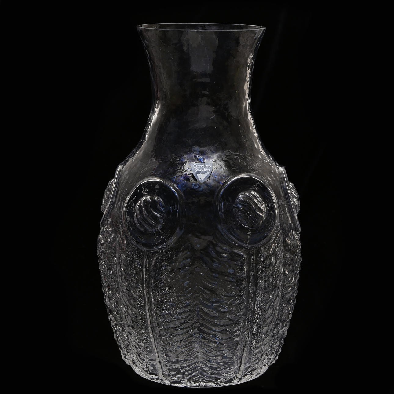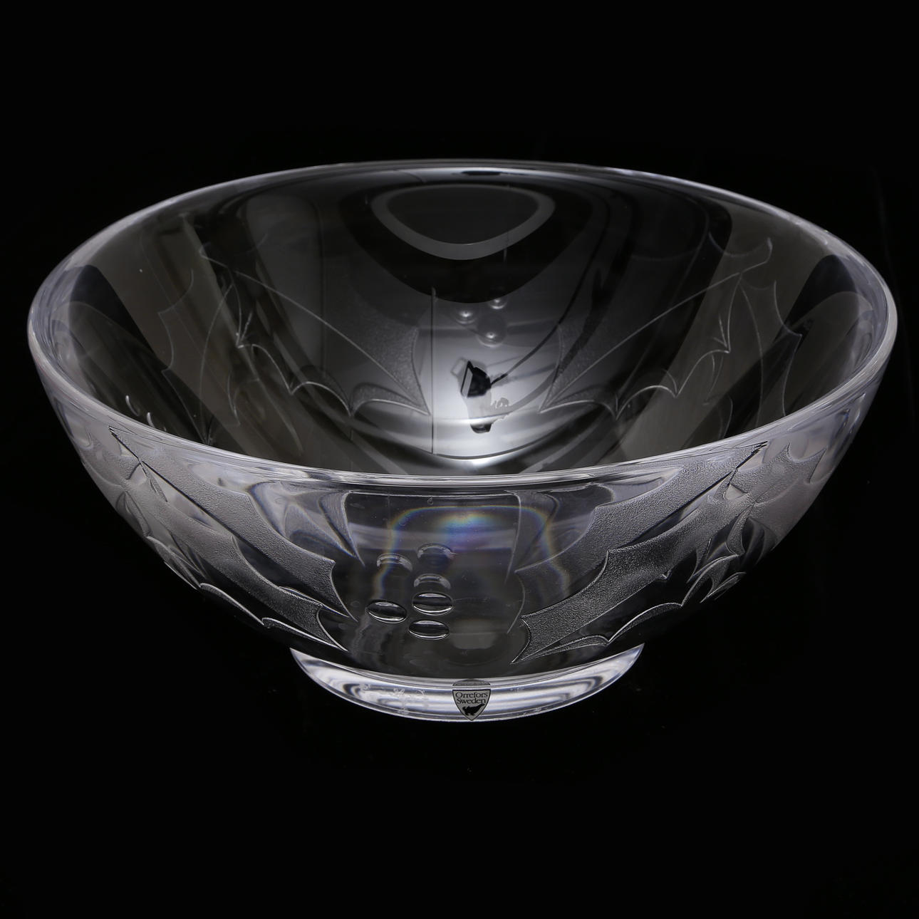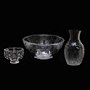 Tusen fönster höjd 8,5, diam 12 cm Stor skål höjd 13, diam 27,5 cm Karaff höjd 21,5, diam 12 cm.