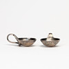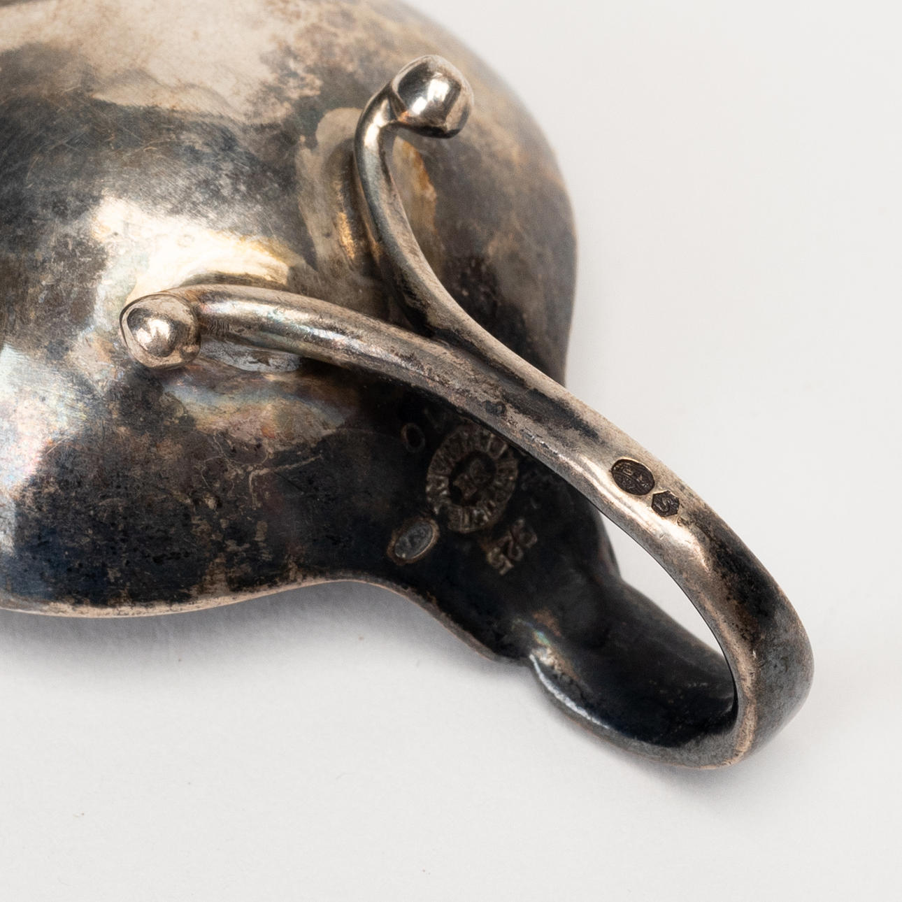 Med handtag, längd ca 5 och bredd 3,5 cm. Totalvikt ca 28 g.
