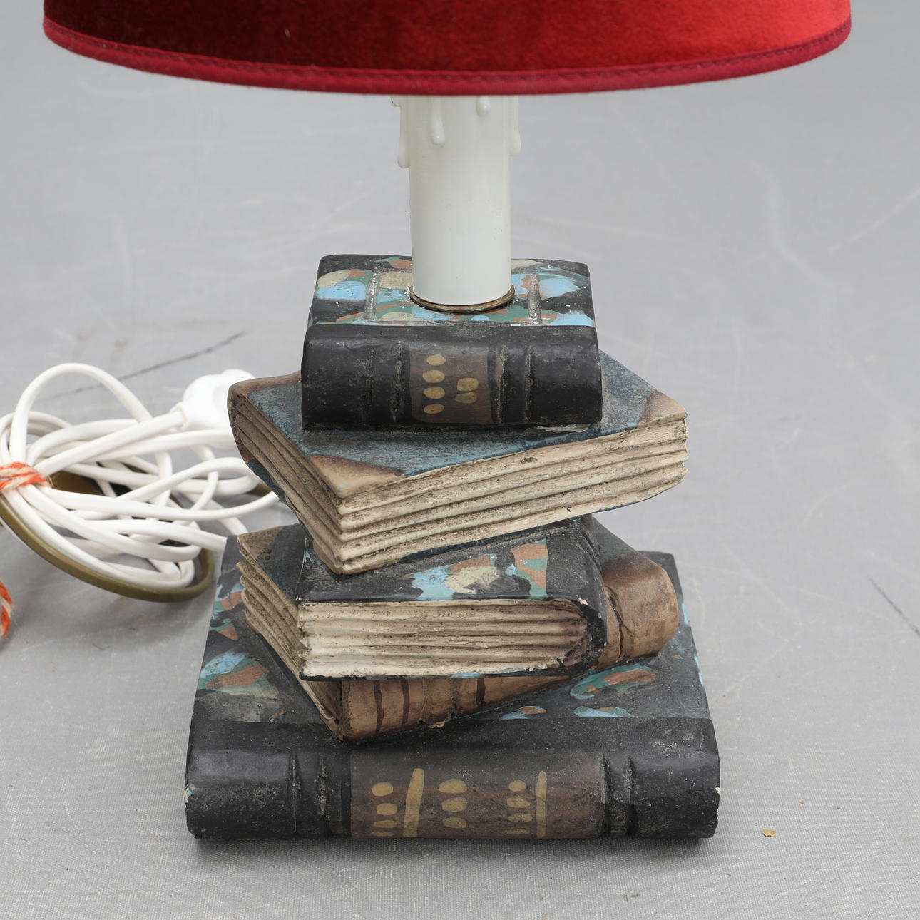 4917082. BORDSLAMPA, föreställande bokhög, 1990 - tal.