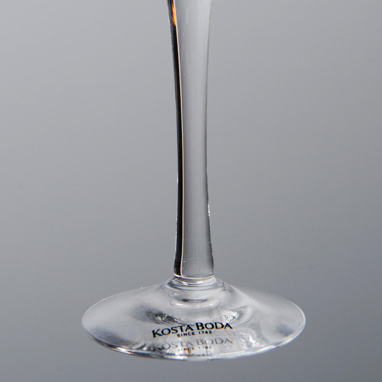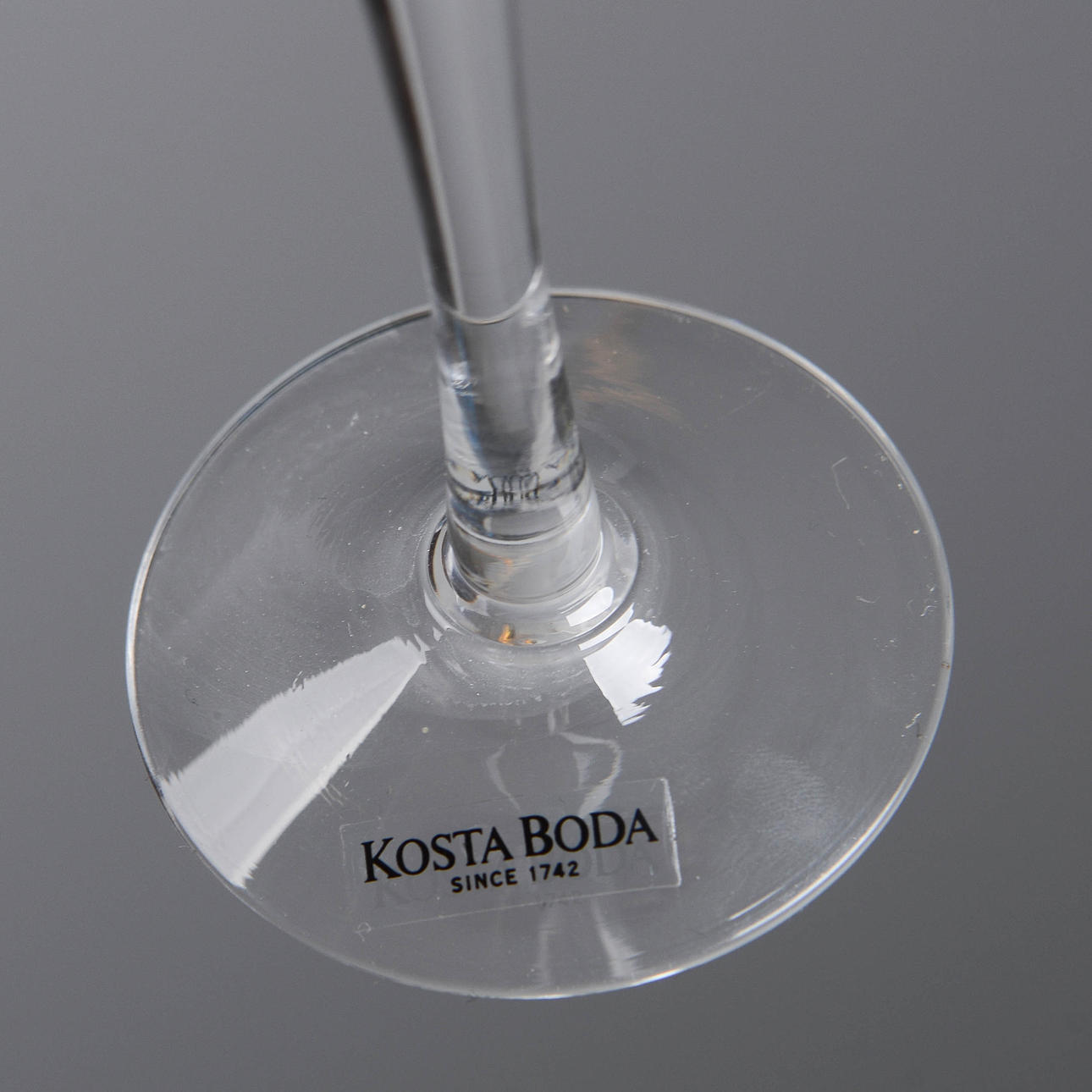Klart glas. Handgjorda. Delvis etikettmärkta. Höjd 15 cm.