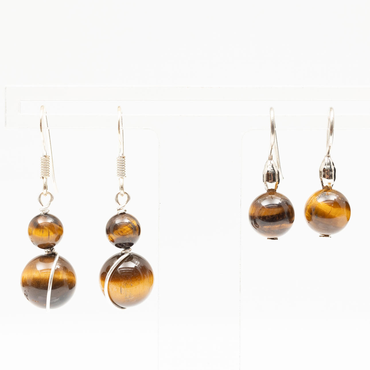 Örhängen med tigeröga höjd 2,4-3,6 cm.