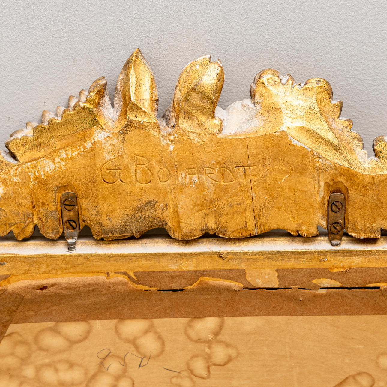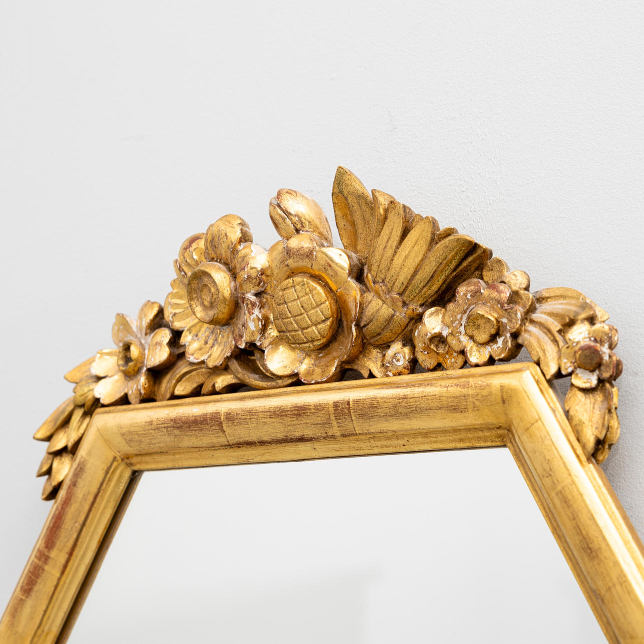 Krönet med dekor i form av blommor och bladverk, höjd ca 79 och bredd 42 cm.