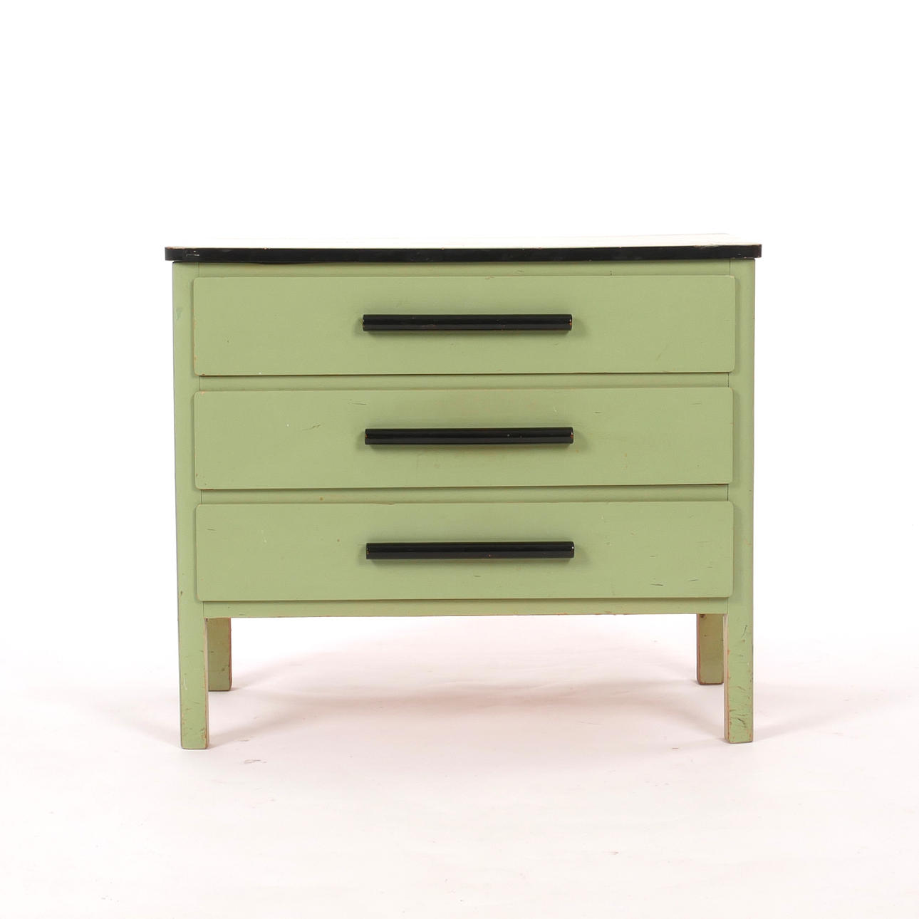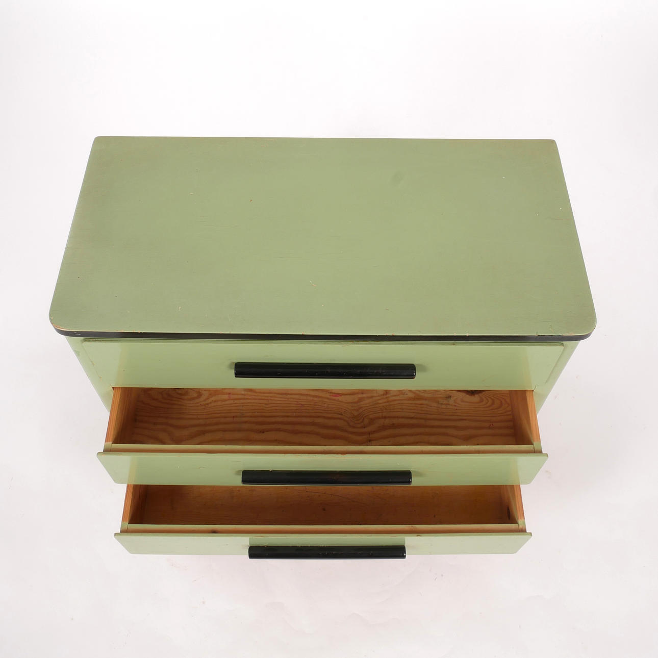 Ljusgrönlackerad med svärtade lådhandtag och kant.