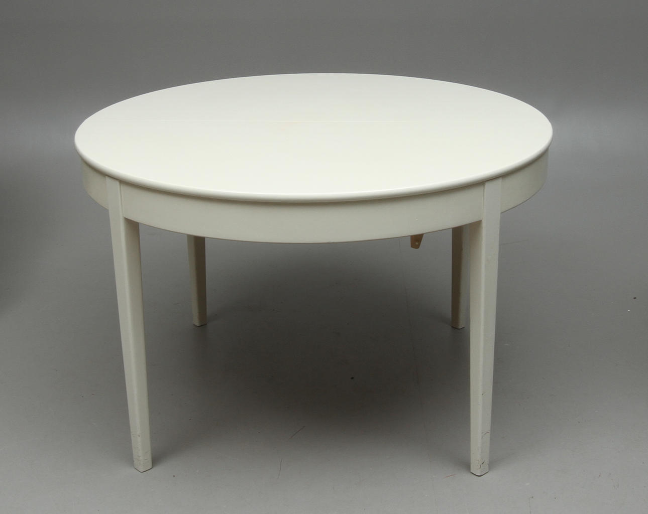 Bord coch 6 stolar, stolarna ,märkta Asko, bordets mått: diameter 115, höjd 73, 2 utdragsskivor à 57 cm.