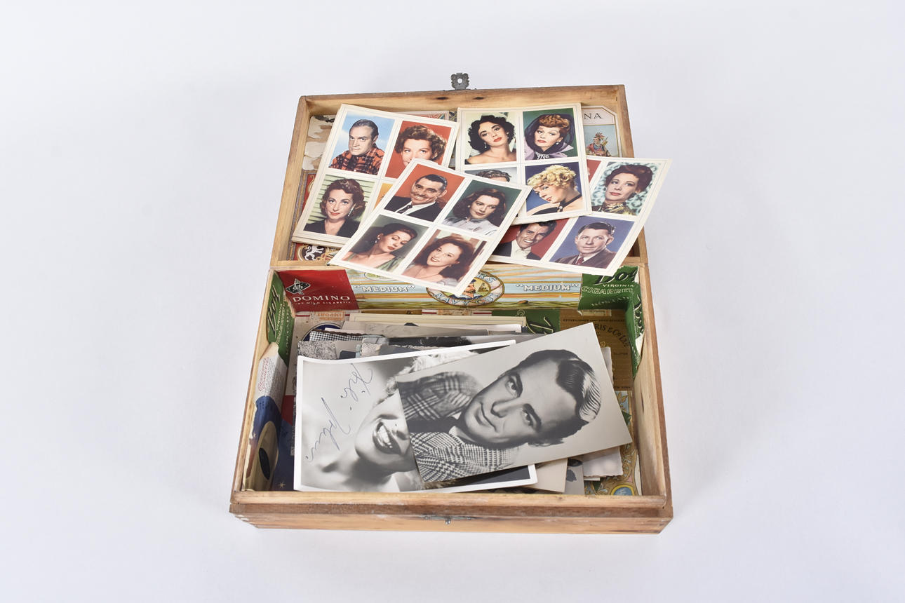 bland annat signerat fotografi av Bibi Johns,