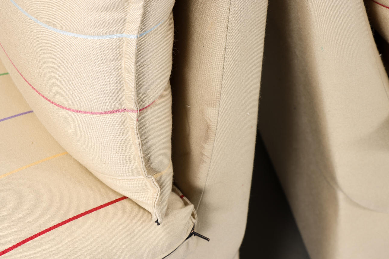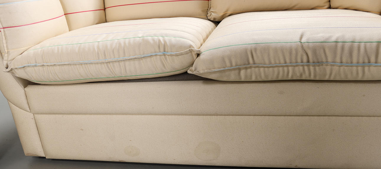 Klädselslitage, bruksslitage, fläckar.