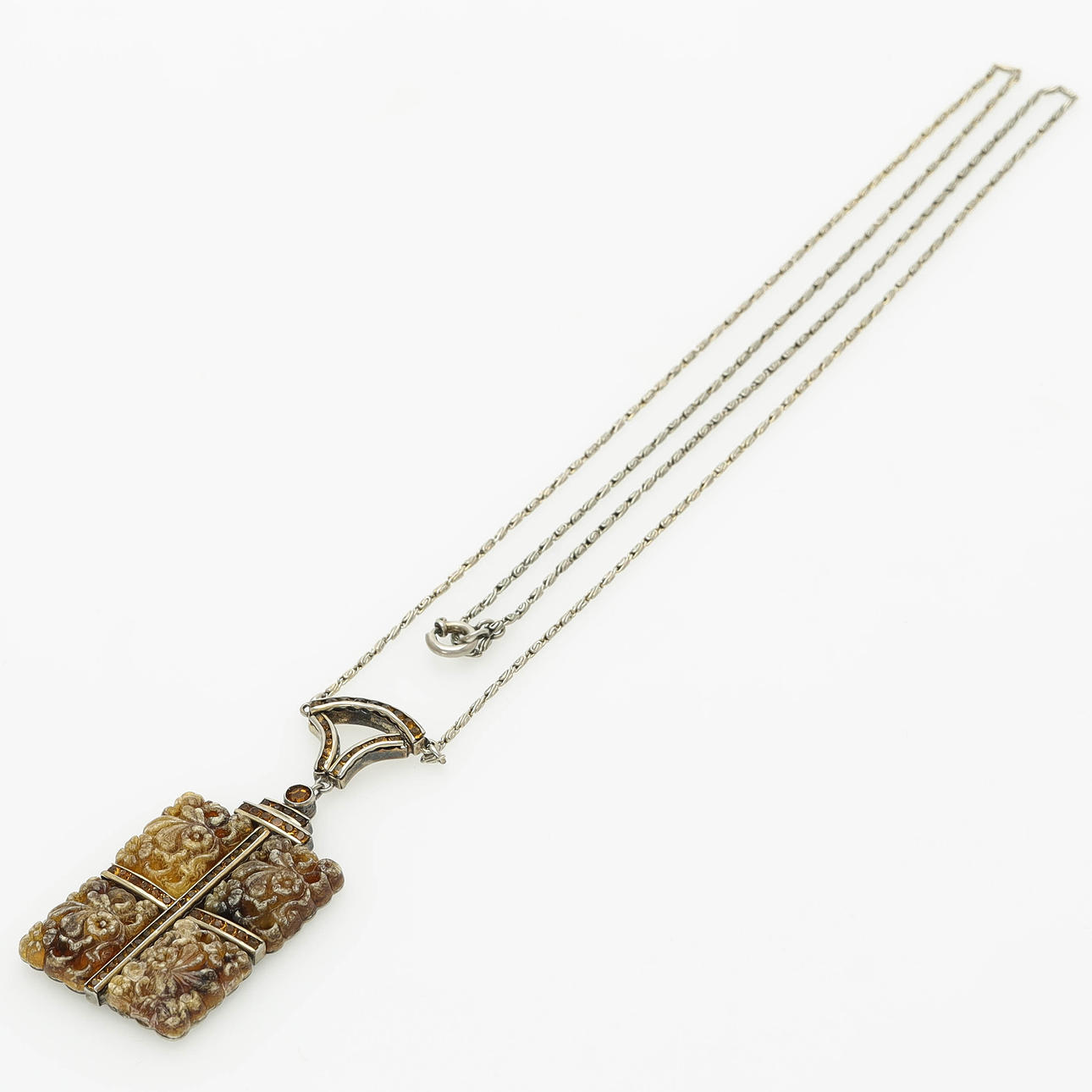 Blommor snidade i troligtvis bärnsten.