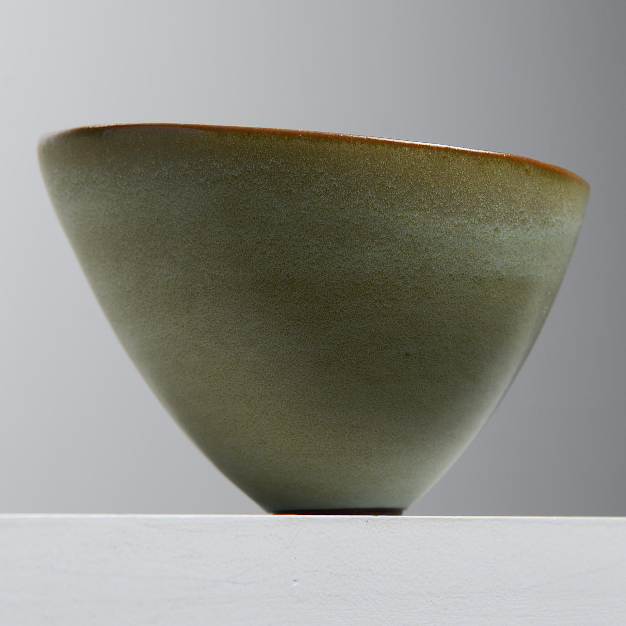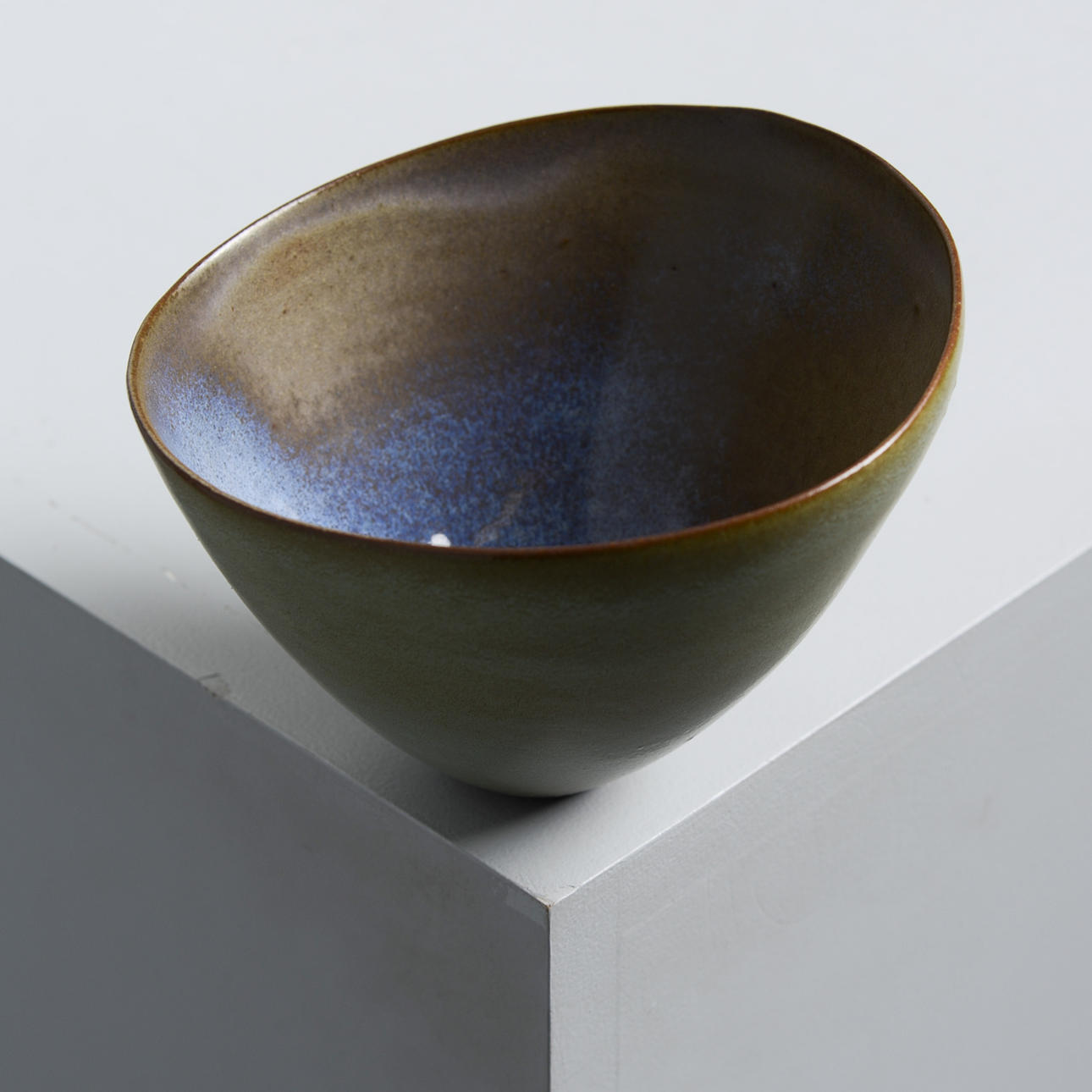 Bakgrund: Den av formgivarna på Upsala-Ekeby som var närmast leran, materialet, var Ingrid Atterberg (1920-2008). Hon experimenterade alltifrån första början, som den skolade keramiker hon var, med leror, glasyrer och tekniker. Till exempel återupplivade hon svartleran, en blandning av rödlera och manganoxid, och gjorde den till ett effektfullt inslag i många konstgodsserier, inte bara hennes egna; hon fick också fram en serie, Sintergods, som lyckades frambringa stengodseffekter ur den uppländska leran; hon hittade även på ett sätt att använda sig av chamottelerans effekter utan att behöva dreja den.