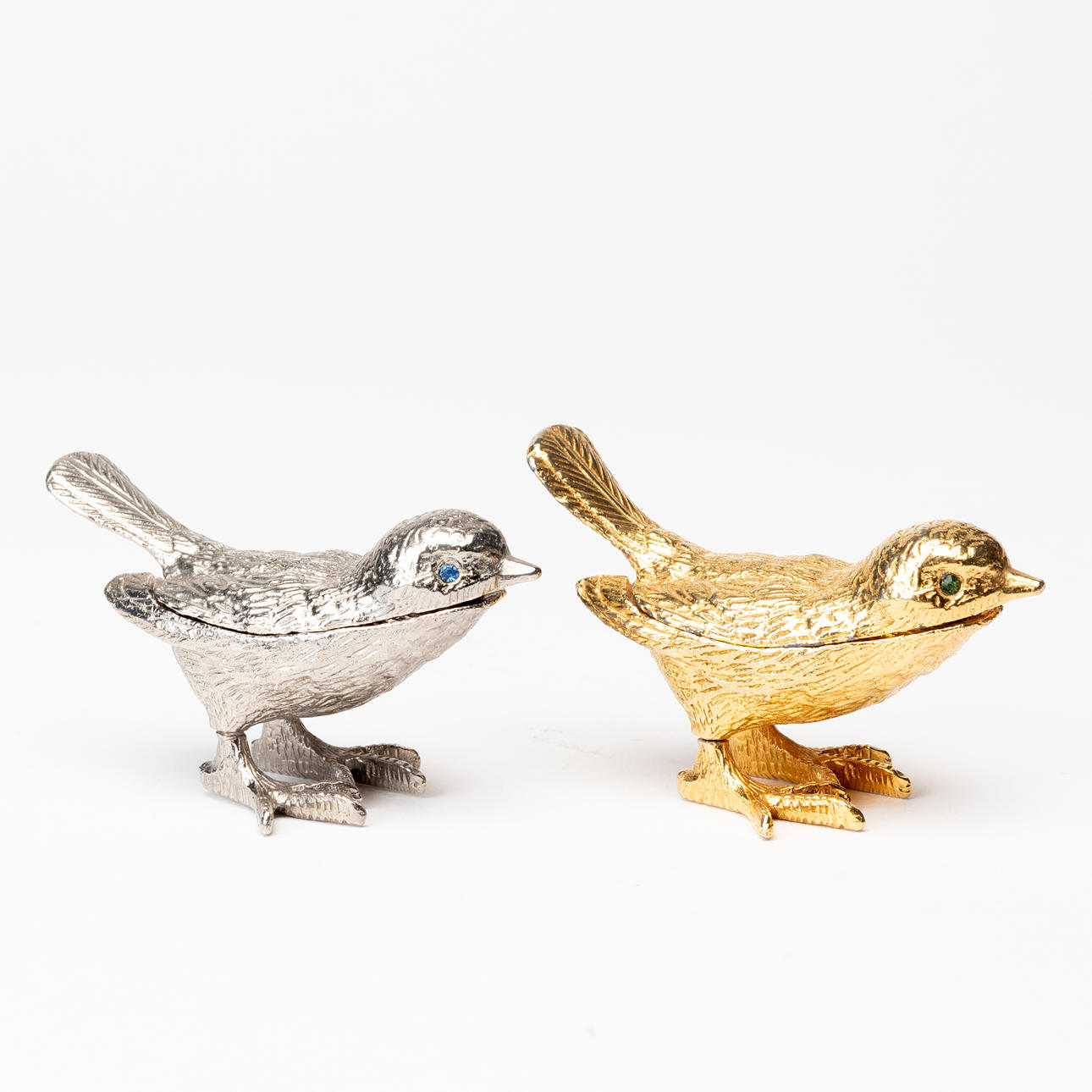 LOCKASKAR i form av fåglar, metall, samtida.