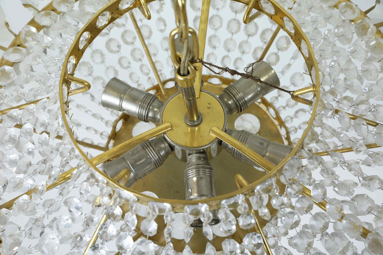 Diameter ca 42 cm Behängd med glasprismor.