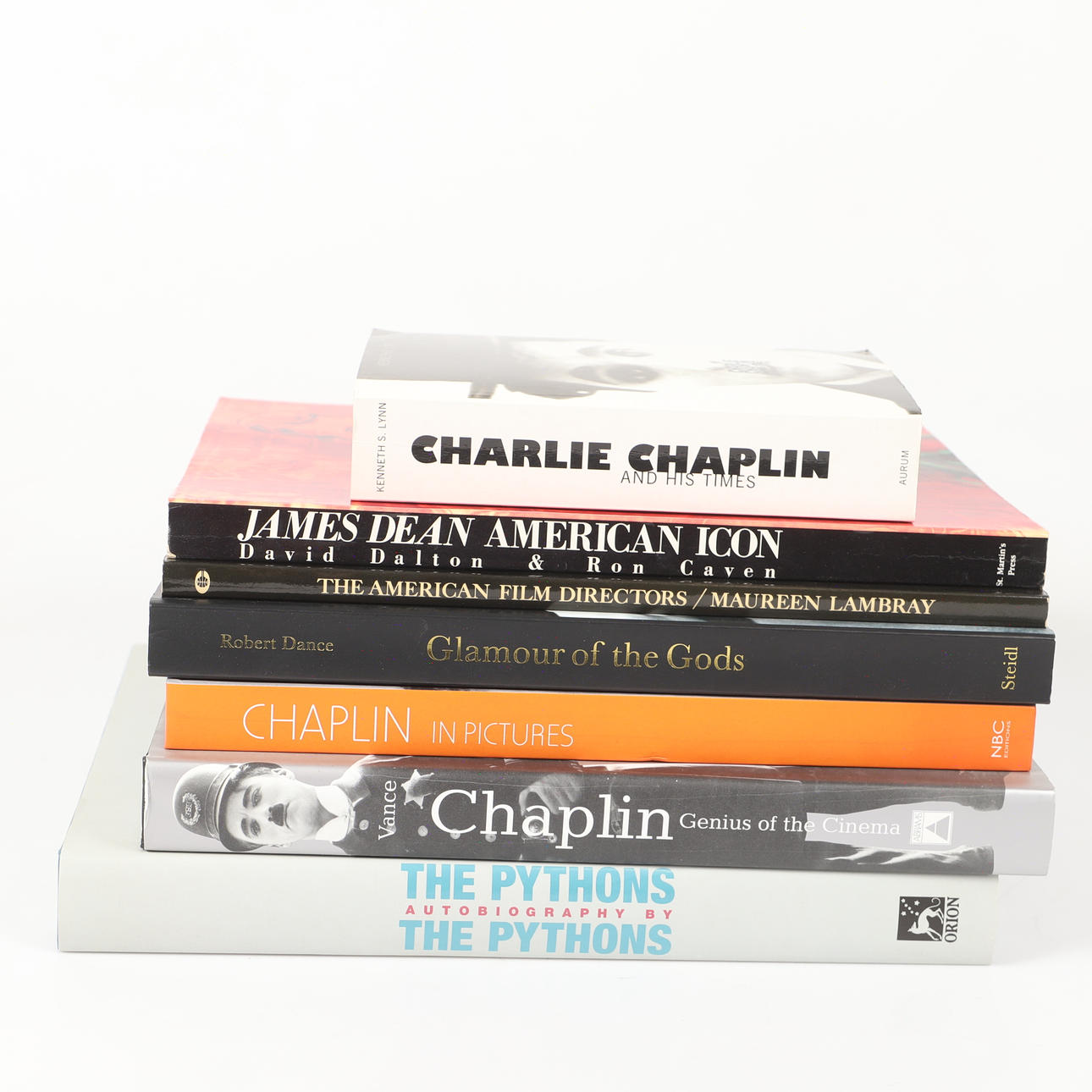 1 bok om Monty Python,1 bok om James Dean, 1 bok om rgissörer och 1 bok om filmstjärnor