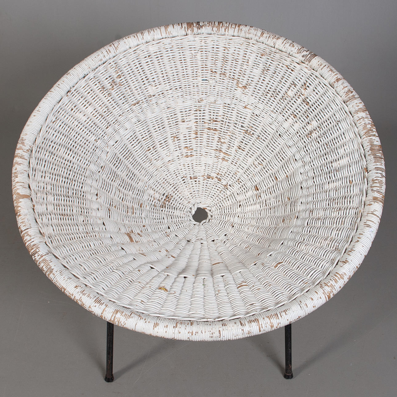 Rund lös vitlackerad sits i rotting.