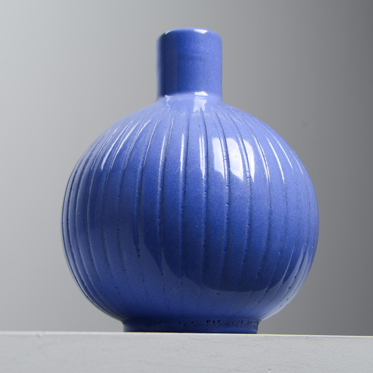 Lergods, med räfflad dekor. Höjd 13,5 cm.