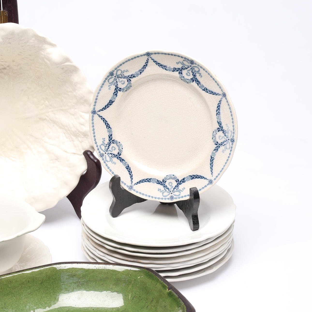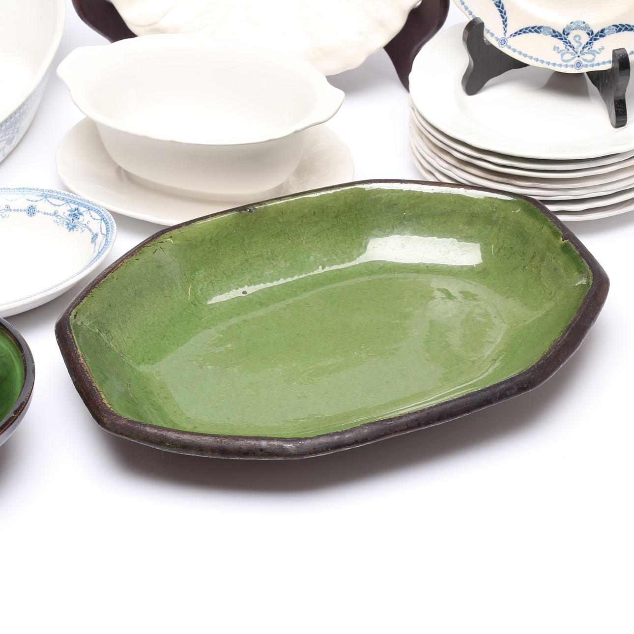 Assietter, fat, såsskål. Största måttet ca 31x23 cm.