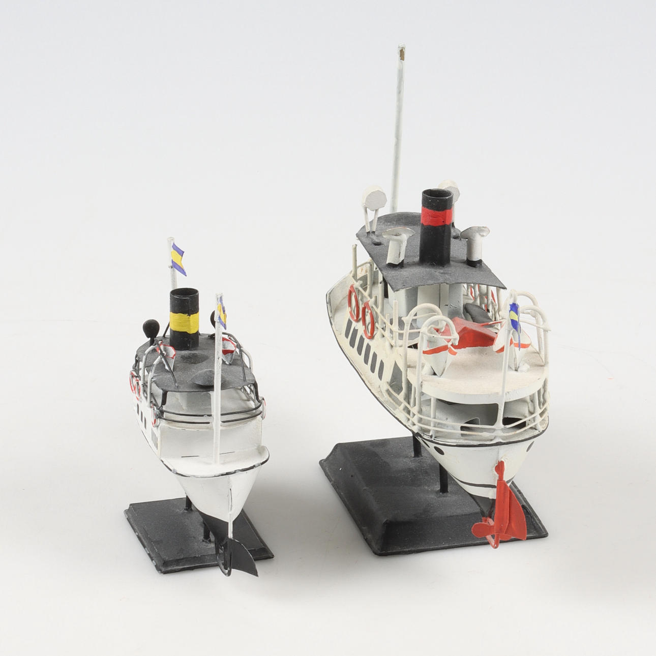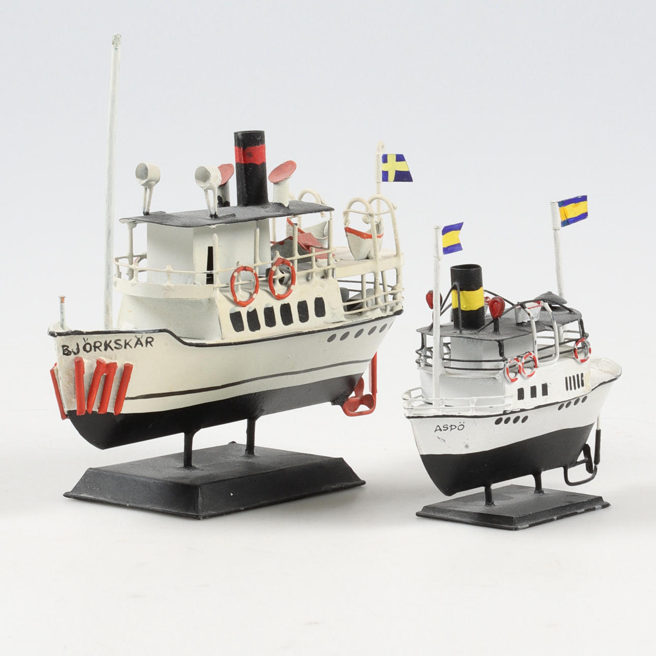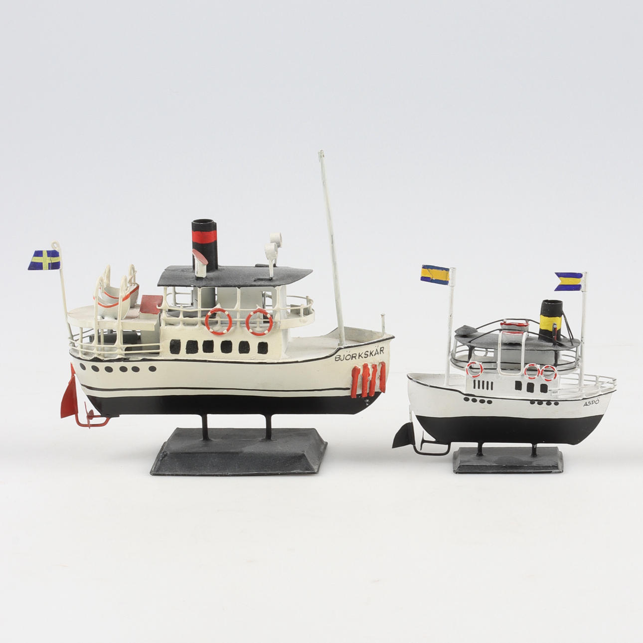 4922790. MODELLBÅTAR, 2 st, Skärgårdsbåtar, bemålad plåt, 19/2000-tal.