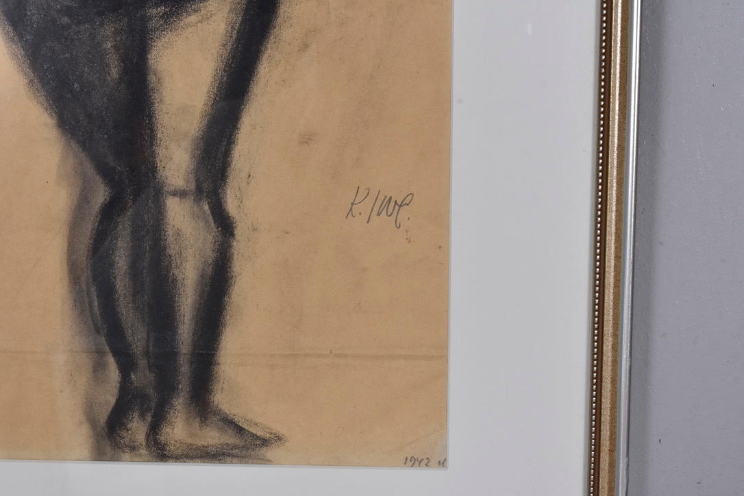 KNUT IRWE. kolteckning, stående akt.
