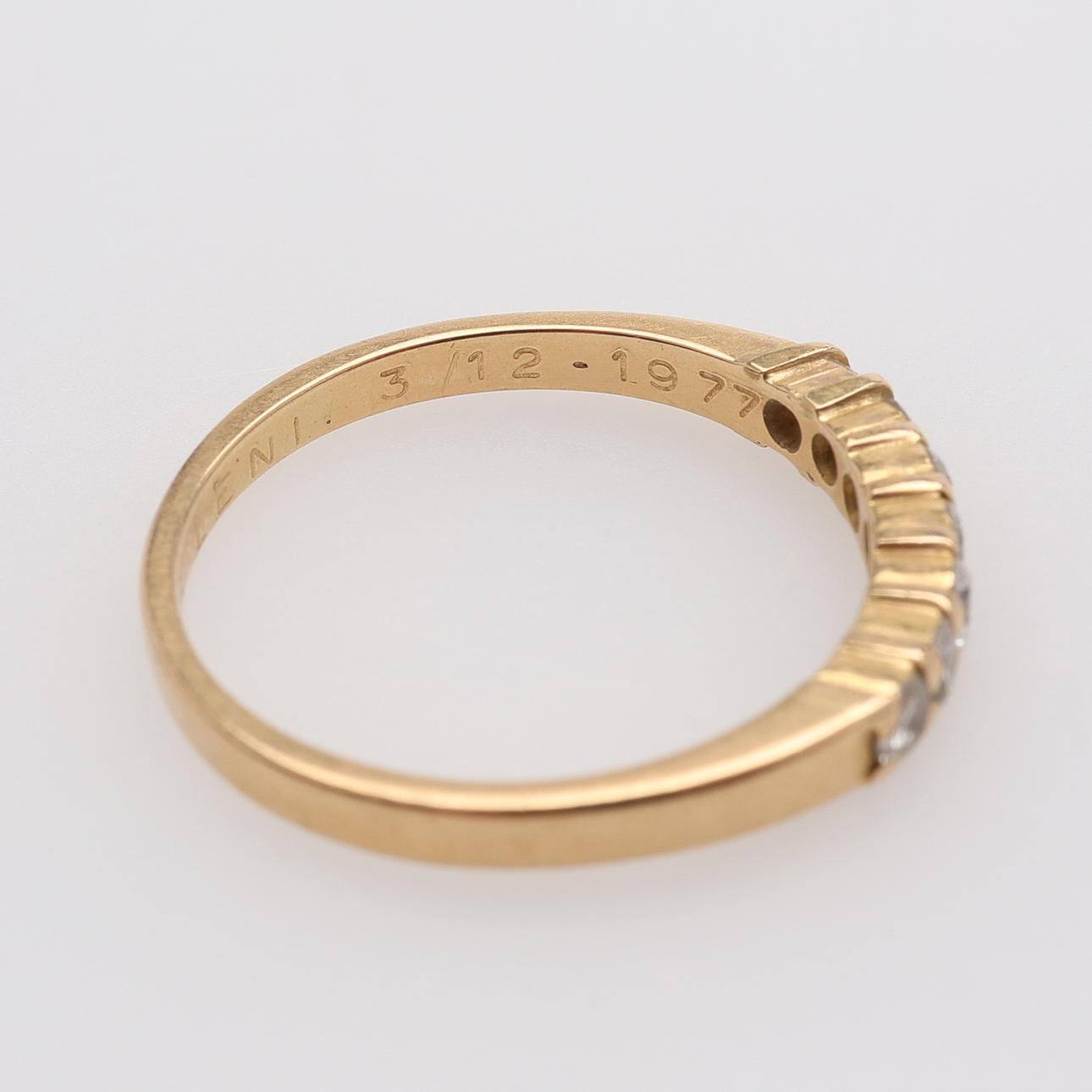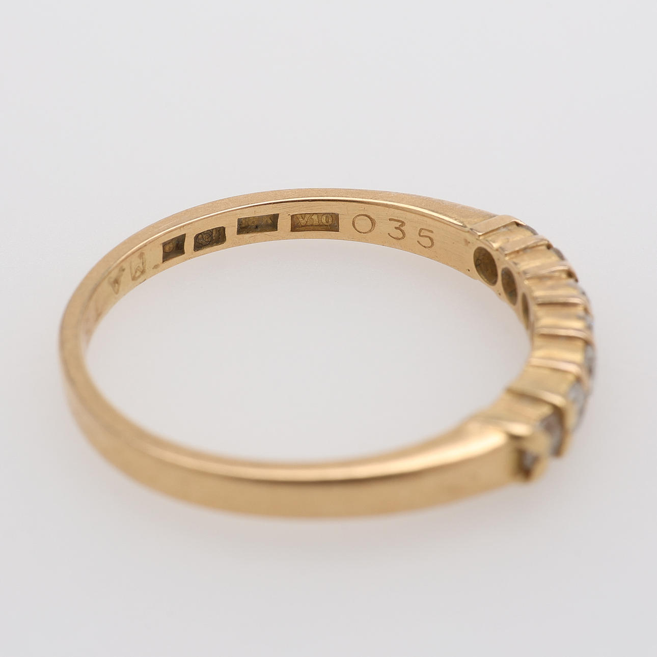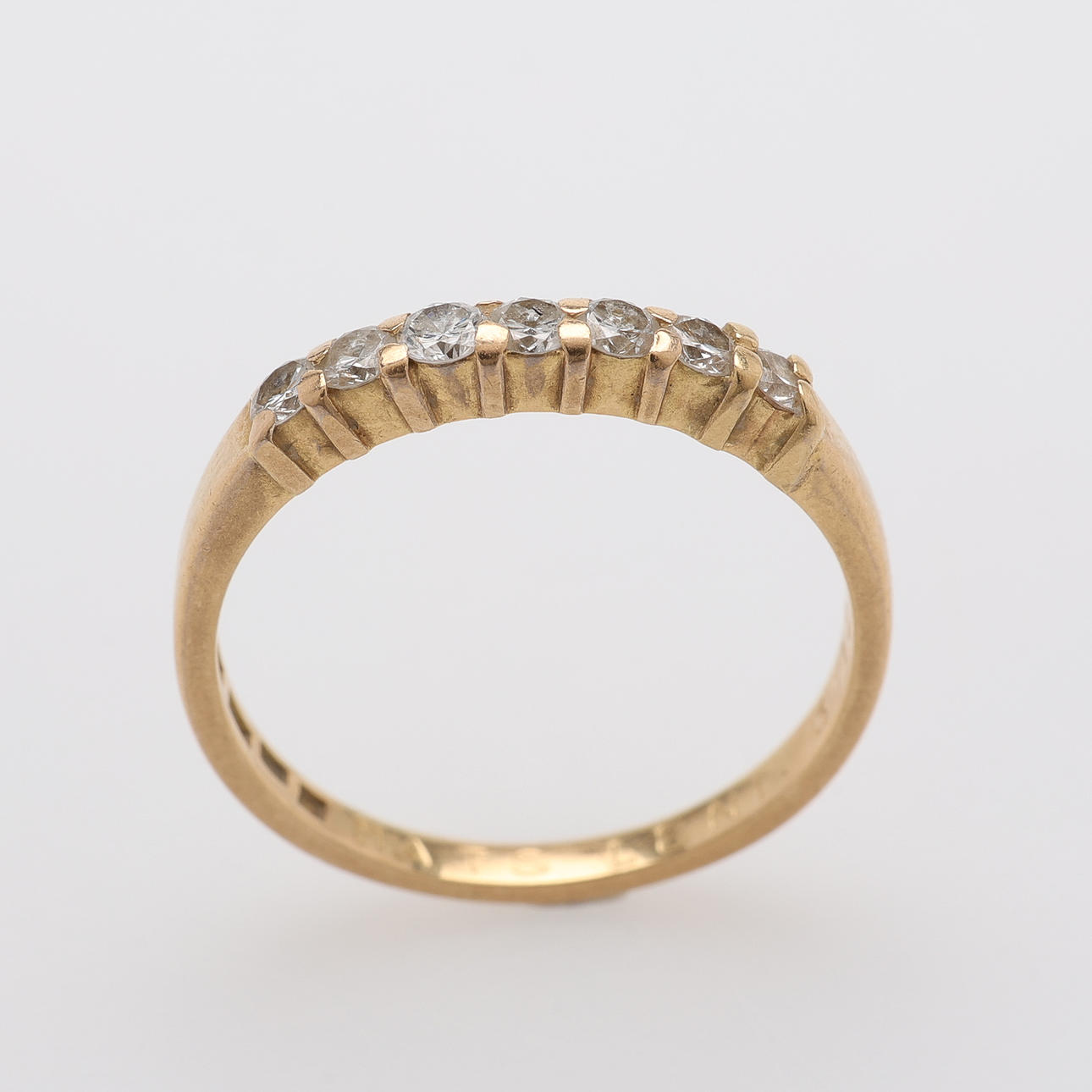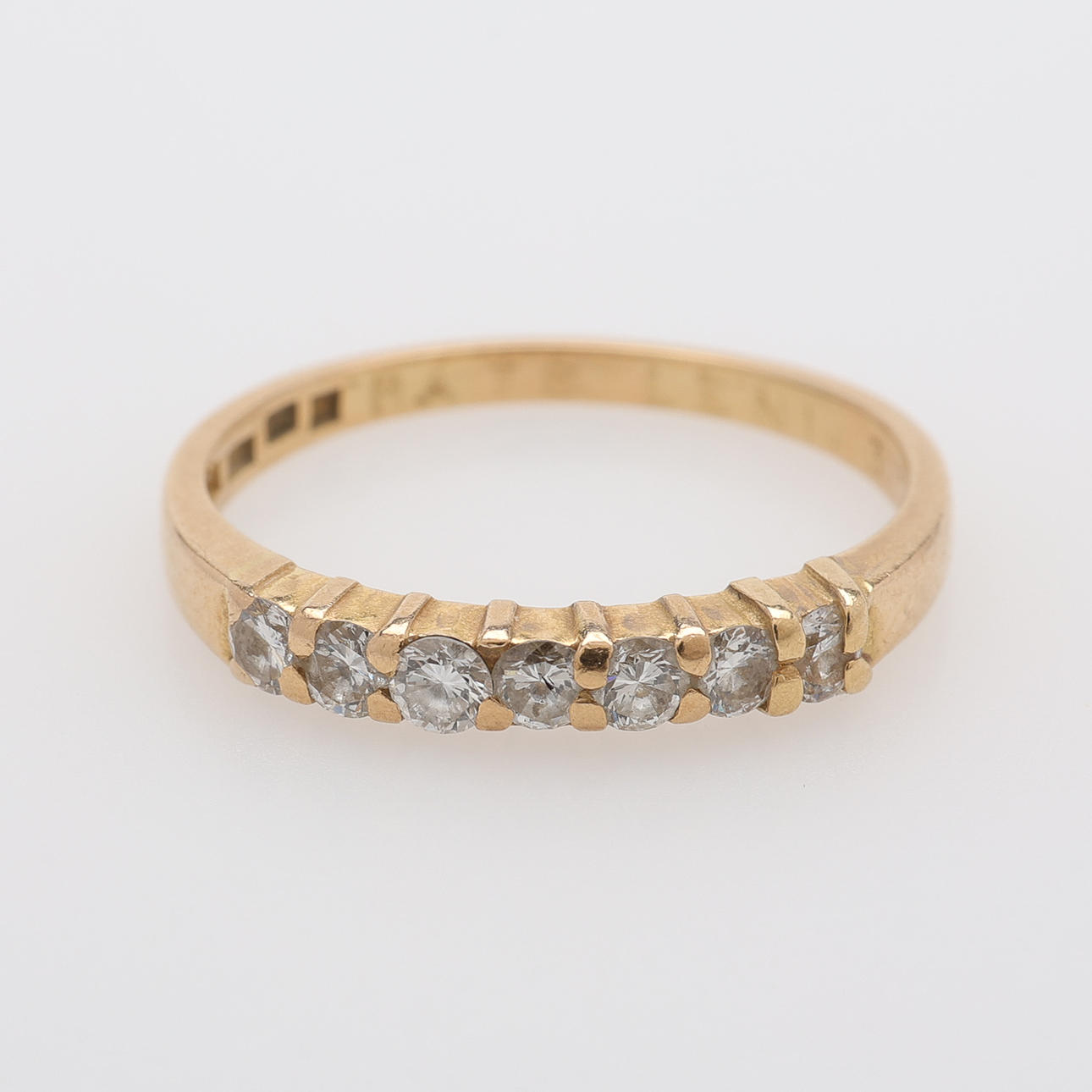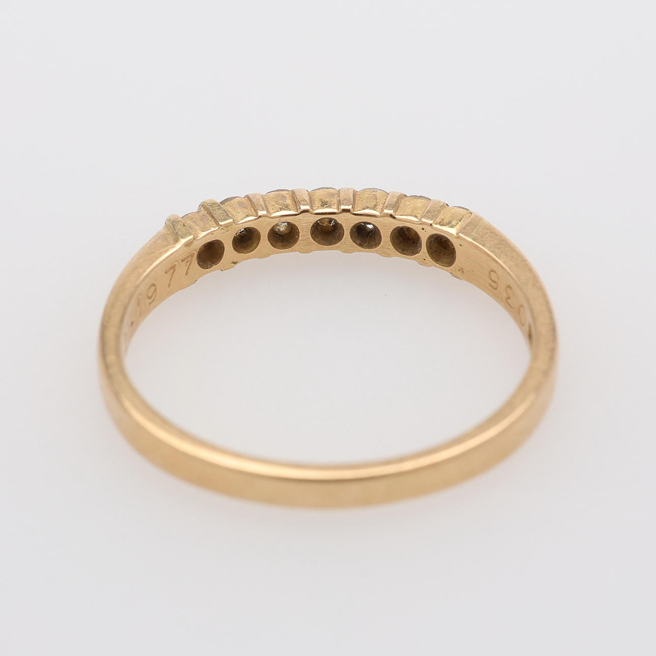 Ring 18K. 7 briljanter 0,35 ct enligt gravyr. Total vikt 2,8 g. Storlek 18.